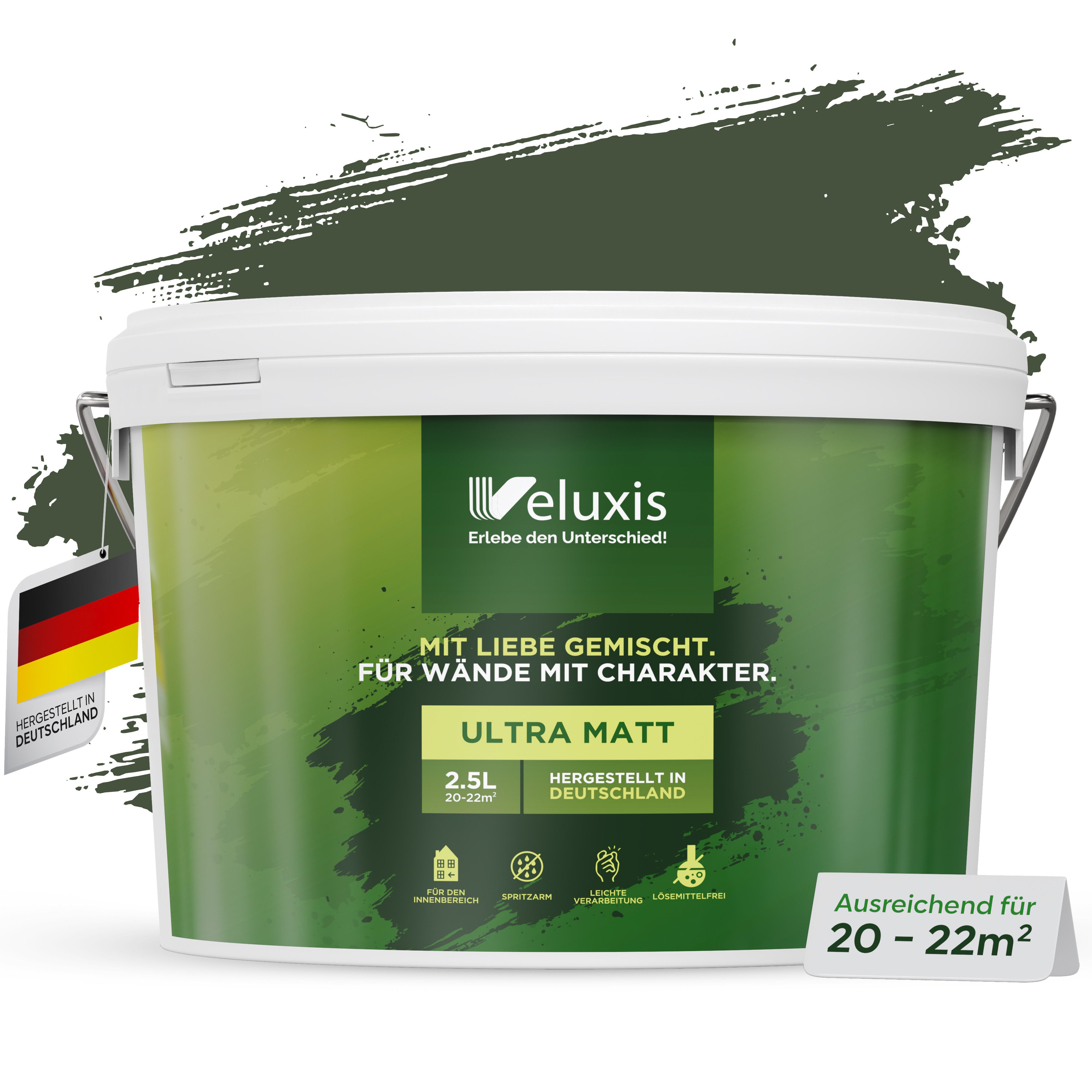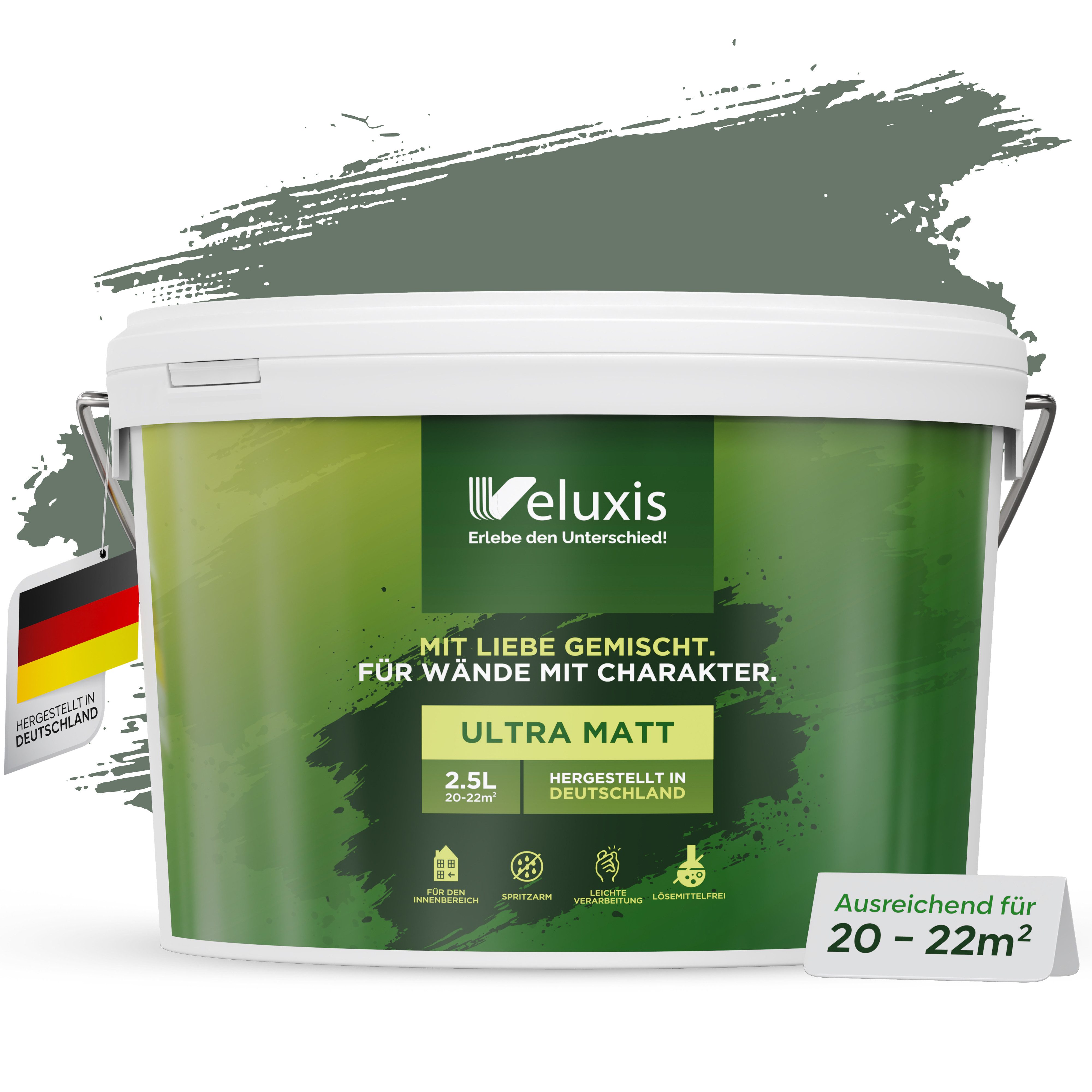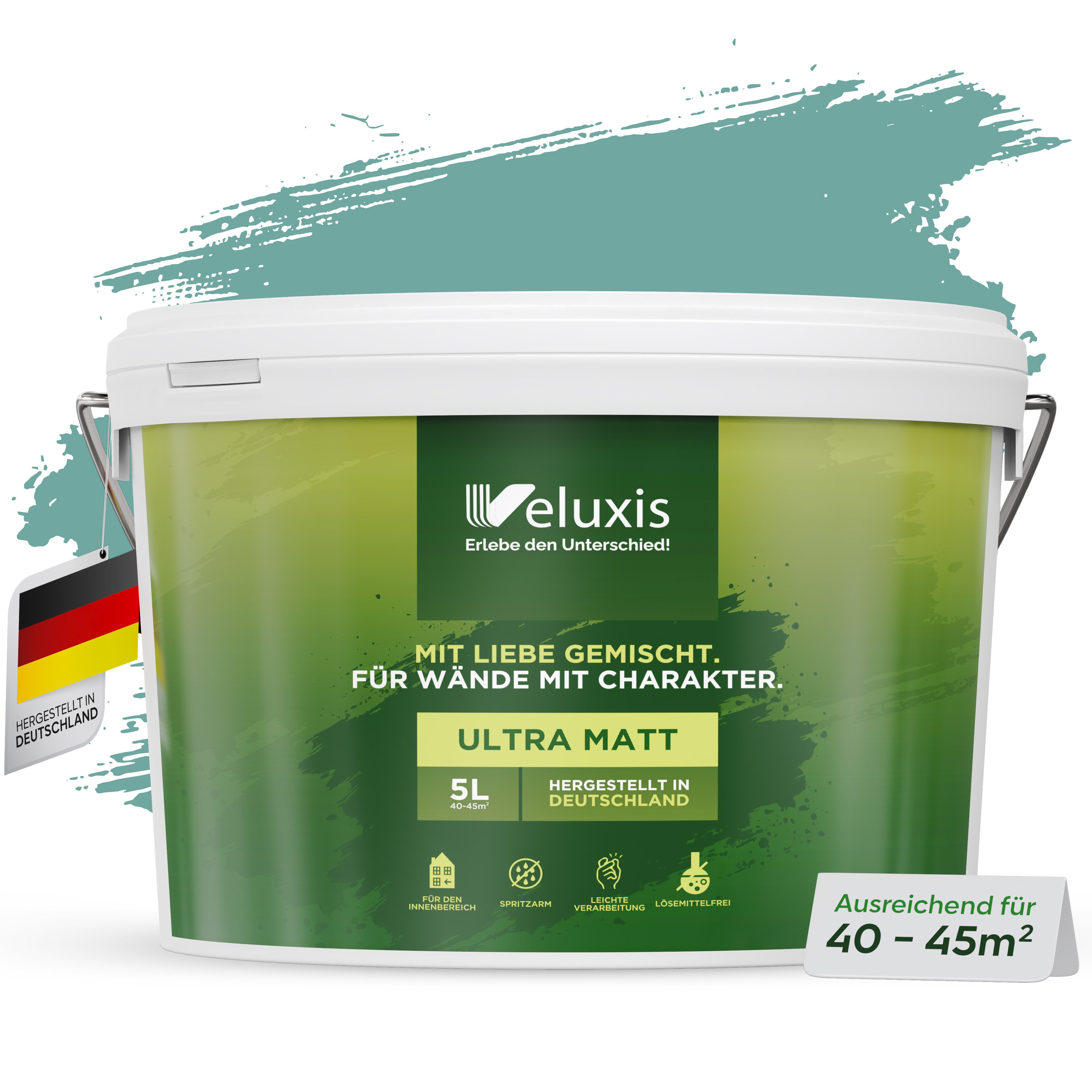 Qualität aus Deutschland: Produziert nach strengen Standards in Deutschland. In 2,5 l und 5 l erhältlich – in vielen dezenten, vielseitig kombinierbaren Farbtönen.