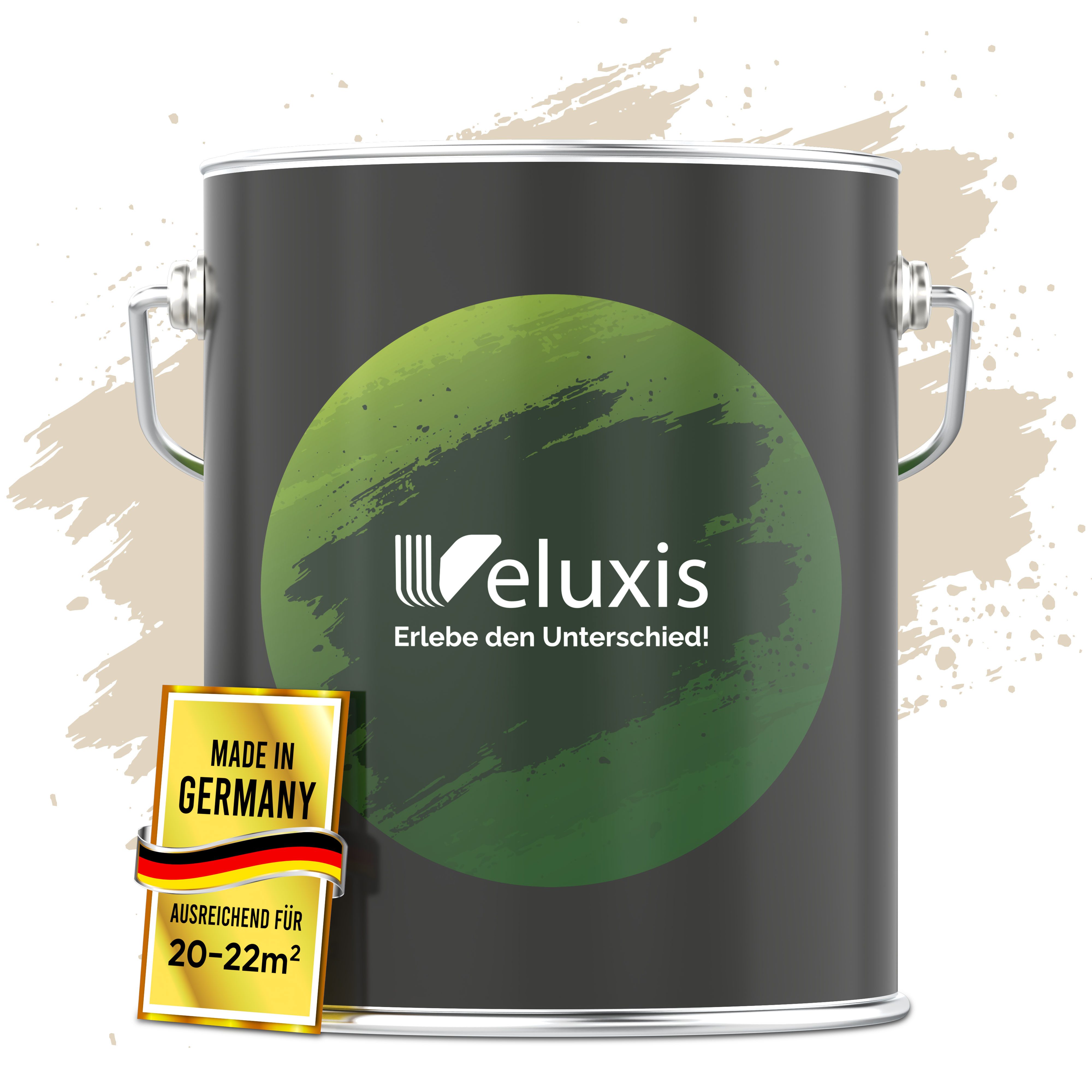"Veluxis Premium-Wandfarbe – Stilvolle Räume mit Charakter Verleihe deinem Zuhause eine besondere Note: Die Veluxis Premium-Wandfarbe wurde speziell für stilbewusste Wohnräume entwickelt und überzeugt durch ein elegantes Matt-Finish, starke Deckkraft und eine hochwertige, tropfarme Rezeptur. Ideal für Wohnzimmer, Schlafzimmer, Flur oder Arbeitszimmer – überall dort, wo Design und Qualität zählen. Mit exklusiven Premium-Pigmenten – für satte, edle Farbtöne Die einzigartige Rezeptur basiert auf ausgewählten Premium-Pigmenten, die eine außergewöhnlich tiefe, satte Farbwirkung ermöglichen. So entstehen harmonische, edle Farbakzente mit besonderer Ausstrahlung – perfekt für moderne Innenräume mit Anspruch. Die Pigmente sorgen für ein samtig-mattes Finish und eine besonders hochwertige Haptik. Hohe Deckkraft & einfache Anwendung Bereits beim ersten Anstrich deckt die Farbe zuverlässig – für gleichmäßige Ergebnisse ohne Streifen oder Flecken. Die cremige Konsistenz lässt sich mühelos mit Rolle oder Pinsel auftragen, ganz ohne Tropfen oder Kleckern. Ideal für DIY-Projekte – auch für Einsteiger. Emissionsarm & lösungsmittelfrei Die Veluxis Premiumfarbe ist geruchsarm, emissionsarm und frei von Lösungsmitteln – bestens geeignet für sensible Innenräume und ein gesundes Wohnklima. Haftet zuverlässig auf vielen Untergründen Ob Beton, Putz, Gips, Tapeten, Raufaser oder Malervlies – die Farbe deckt gleichmäßig und verlässlich auf allen gängigen Innenflächen. Drei praktische Gebindegrößen Erhältlich in 1 L, 2,5 L und 5 L – ideal für kleine Projekte oder ganze Räume. Reichweite: • 1 L ≈ 8–10 m² • 2,5 L ≈ 20–22 m² • 5 L ≈ 40–45 m² Hergestellt in Deutschland – für höchste Ansprüche Veluxis steht für Qualität und Präzision. Die Premium-Wandfarbe wird in Deutschland entwickelt und produziert – für langlebige, stilvolle Wände mit Charakter und Tiefe."