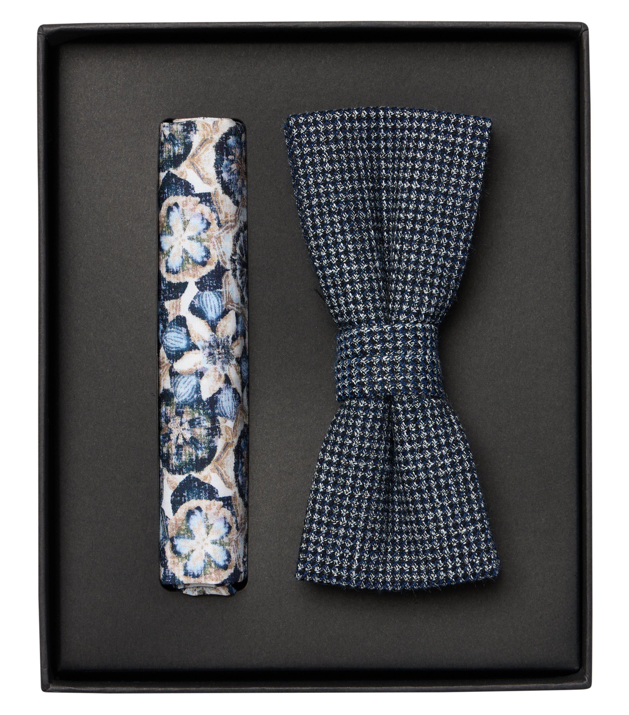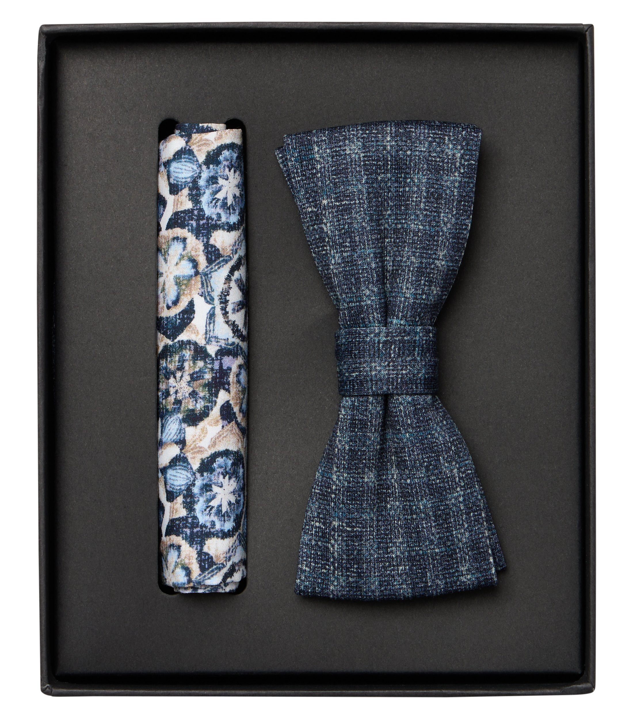 Mit diesem Set aus Fliege und Einstecktuch ist der Grundstein für ein optimal abgestimmtes Outfit gelegt. Tragen Sie das Set zu festlichen Anlässen oder modisch stilvoll zu einem Dinner. Dank des hochwertigen Materials sind Fliege und Einstecktuch sehr weich und präsentieren sich in höchster Qualität. Das Set ist vielseitig kombinierbar und stets die richtige Wahl.