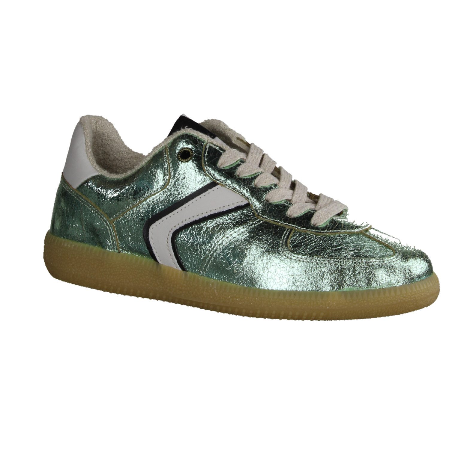 Der Damensneaker Verbenas Sora zeichnet sich durch ein frisches und lebendiges Design aus. Das Obermaterial ist in einem auffallendem Menta-Glitterton gehalten, der dem Schuh eine frische und moderne Optik verleiht. Der Sneaker verfügt über ein Wechselfußbett, das für zusätzlichen Komfort sorgt und individuell angepasst werden kann. Das Design ist sportlich und gleichzeitig stilvoll, perfekt für den Alltag oder Freizeitaktivitäten. Die Gummi-Laufsohle ist robust und bietet guten Halt, während kleine Details und Logo-Pads den Schuh optisch aufwerten. Insgesamt ist der Verbenas Sora eine trendige Wahl für Damen, die Komfort und Style verbinden möchten.
