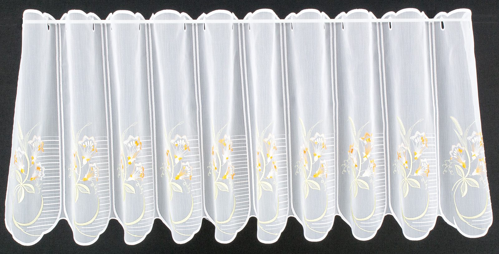 Scheibengardine bestickte Blüten 45 cm hoch weiß grün orange - Wunschbreite frei wählbar durch gekaufte Menge in 16 cm Schritten - Meterware