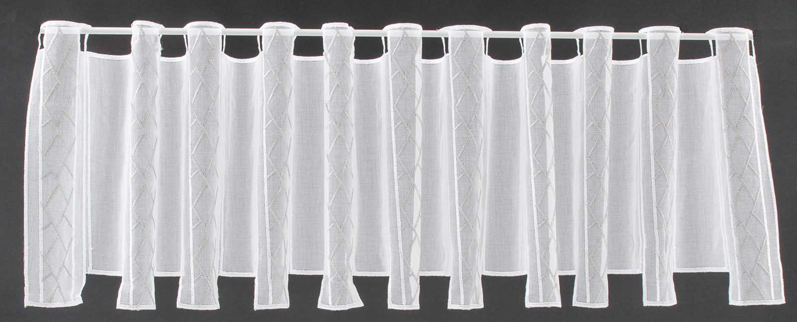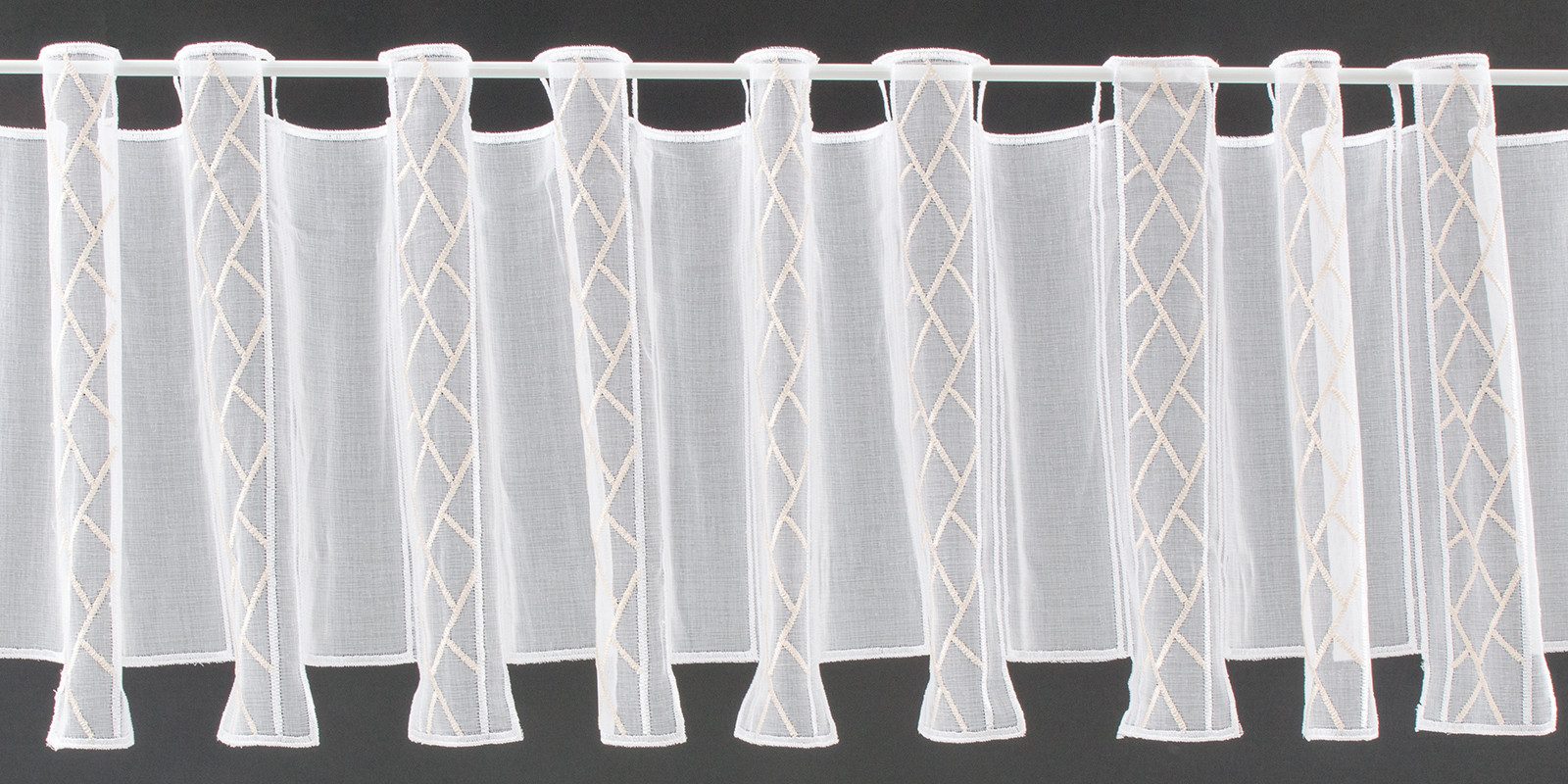 Scheibengardine grafisch bestickt 30 cm hoch weiß beige - Wunschbreite frei wählbar durch gekaufte Menge in 16 cm Schritten - Meterware