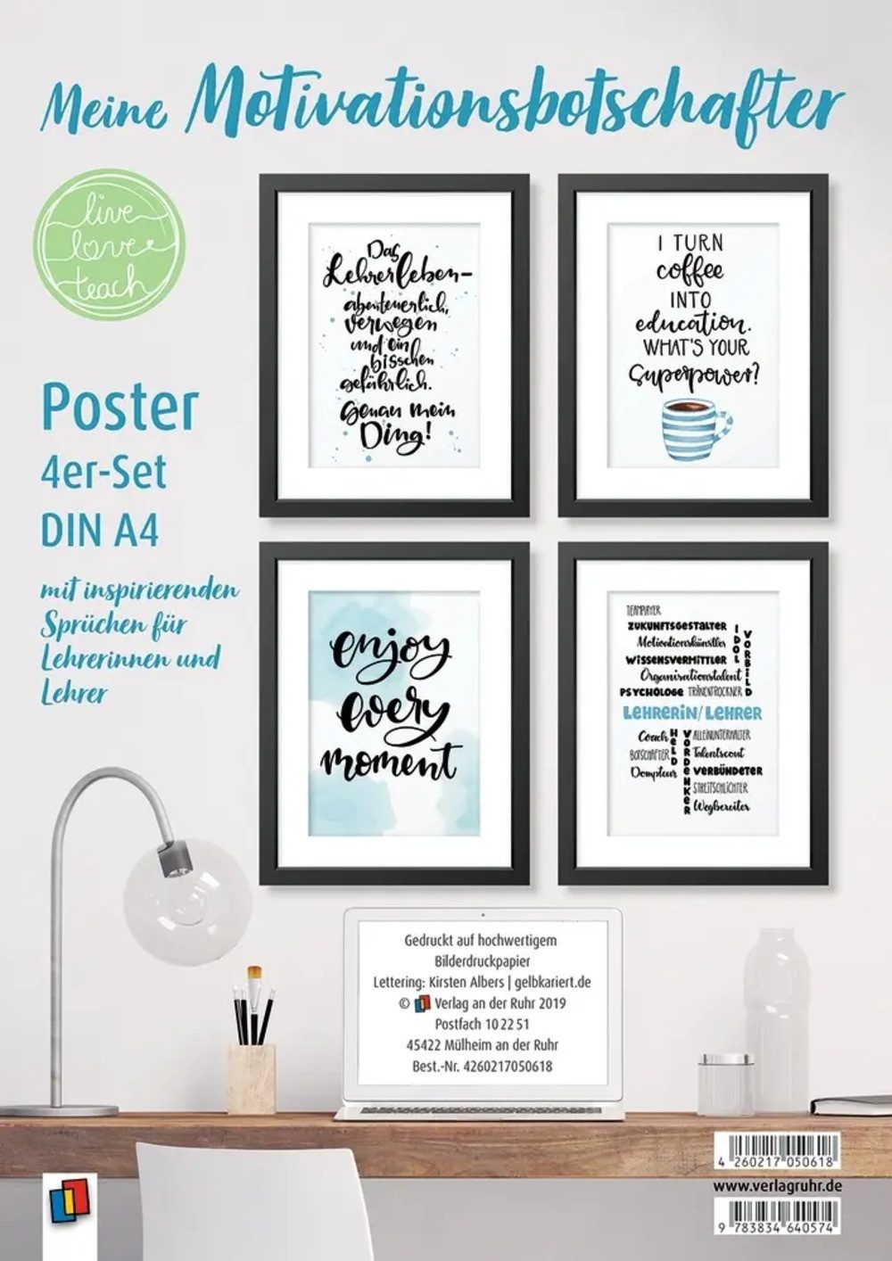 4 hochwertige A4-Poster mit inspirierenden Sprüchen für Lehrer und Lehrerinnen