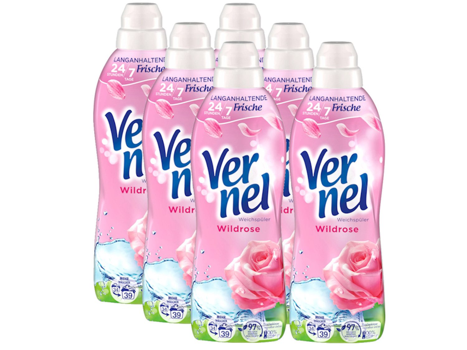 VERNEL Weichspüler Wildrose – Langanhaltendes Dufterlebnis für 24 Stunden & 7 Tage Genieße den außergewöhnlichen Duft nach Wildrosen, der dich dank einzigartiger, nachhaltiger Duft-Technologie jeden Moment während 24 Stunden und bis zu 7 Tage lang begleitet. VERNEL Wildrose nimmt dich mit auf eine Reise unglaublicher Weichheit und eines unvergesslichen Rosenduftes, der sich wie ein Spaziergang in einem Rosengarten anfühlt. Die Wäschepflege-Formel ist dermatologisch bestätigt und reduziert statische Aufladung. Die Lieblingskleidung wird Faser für Faser gepflegt und lässt sich so geschmeidiger bügeln. Gleichzeitig enthält der VERNEL Weichspüler Wildrose 97 % biologisch abbaubare Inhaltsstoffe, . Die Folie kann im Recyclingprozess leicht abgetrennt werden, sodass die Flasche vollständig recycelt werden kann (sofern ein Recyclingstrom verfügbar ist). Die Produktvorteile im Detail: Langanhaltender Effekt bis zu 7 Tage Wildrosen-Duft Hautverträglichkeit dermatologisch bestätigt Formel mit Faserschutz & Anti-Statik Erleichtert das Bügeln Umweltfreundliche Rezeptur 97 % biologisch abbaubare Inhaltsstoffe, Recycelbare Flasche , bezogen auf organische Inhaltsstoffe gemäß OECD 301/302 Anwendung: Den Weichspüler in die Verschlusskappe füllen und in das Weichspülerfach in die Einspülkammer der Waschmaschine geben. Dosierung: 4-5 kg Wäsche: 22 ml 6-8 kg Wäsche: 32 ml (48 ml für Extra Frische und Weichheit) Die Marke Vernel Tauchen Sie ein in die wundervolle Welt der Düfte von VERNEL und erleben Sie Ihren persönlichen Wohlfühl-Moment. Spüren Sie unglaubliche Weichheit und einen langanhaltenden "wie-frisch-gewaschen" Duft. Vernel - Der Duft zum Verlieben!