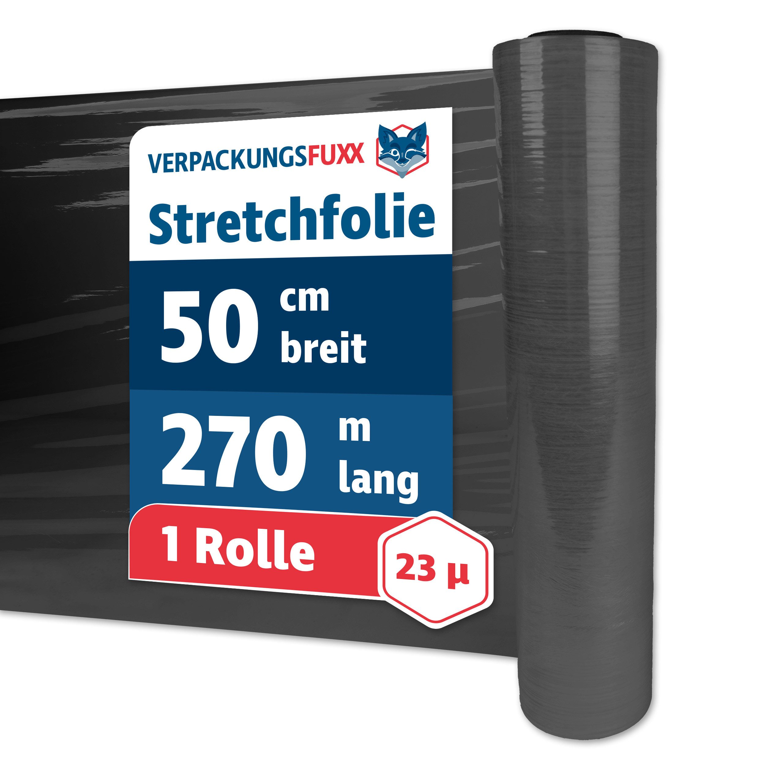 Die schwarze Stretchfolie 23 µ (50 cm x 270 m) ist die ideale Lösung für zuverlässiges Verpacken, Bündeln und Sichern verschiedenster Güter. Ob im Lager, beim Transport oder beim Umzug – diese Folie überzeugt durch ihre hohe Dehnbarkeit von bis zu 150 %, ihre robuste Reißfestigkeit und eine wasserabweisende Oberfläche. Dank der innen haftenden Eigenschaft bleibt die Folie dort, wo sie soll - ganz ohne lästiges Verrutschen. Das leise und mühelose Abrollen sorgt zusätzlich für angenehmes Arbeiten, auch bei häufigem Gebrauch.