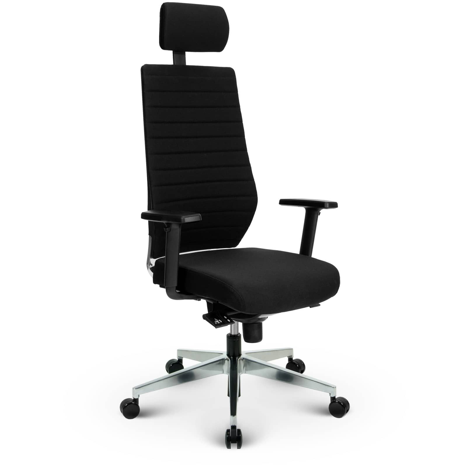 Die Sitztiefe sowie die Kopfstütze sind in mehreren Positionen einstellbar, während die Synchronmechanik für optimale Unterstützung sorgt. Das verchromte Aluminium-Fußkreuz und Sicherheitsdoppelrollen gewährleisten Stabilität und Mobilität, ideal für den Einsatz in Büros, Konferenzräumen und Kanzleien.