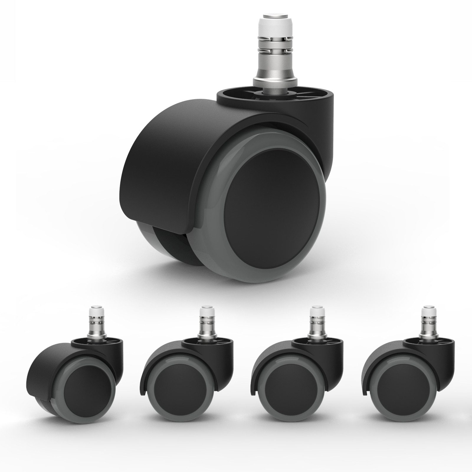 Die Rollen lassen sich einfach und werkzeuglos über eine Steckverbindung montieren und sind durch den integrierten Kunststoffring vor Knack- und Klappergeräuschen geschützt. Dieses Set aus fünf Rollen ist ideal für Bürodrehstühle, Konferenzstühle und Chefsessel geeignet. Entdecken Sie auch weiteres Zubehör wie Rollcontainer und System8X Büromöbel, um Ihre Büroeinrichtung zu perfektionieren.