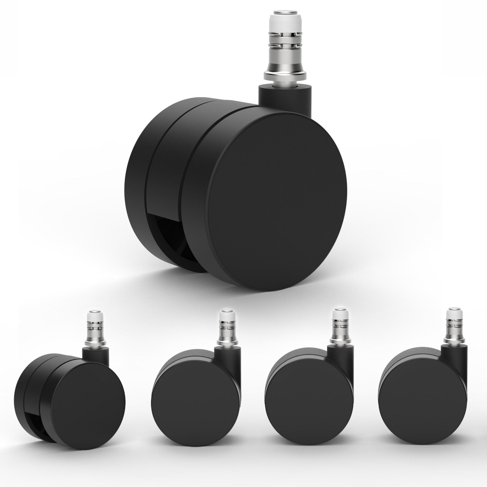 Die einfache Montage per Steckverbindung spart Zeit und erfordert kein Werkzeug. Ein integrierter Kunststoffring minimiert störende Klappergeräusche und sorgt für eine ruhige Nutzung. Diese Rollen sind eine ideale Ergänzung für Ihre Bürodrehstühle oder Chefsessel. Stöbern Sie auch in unserer Kategorie Rollen für weiteres Zubehör.