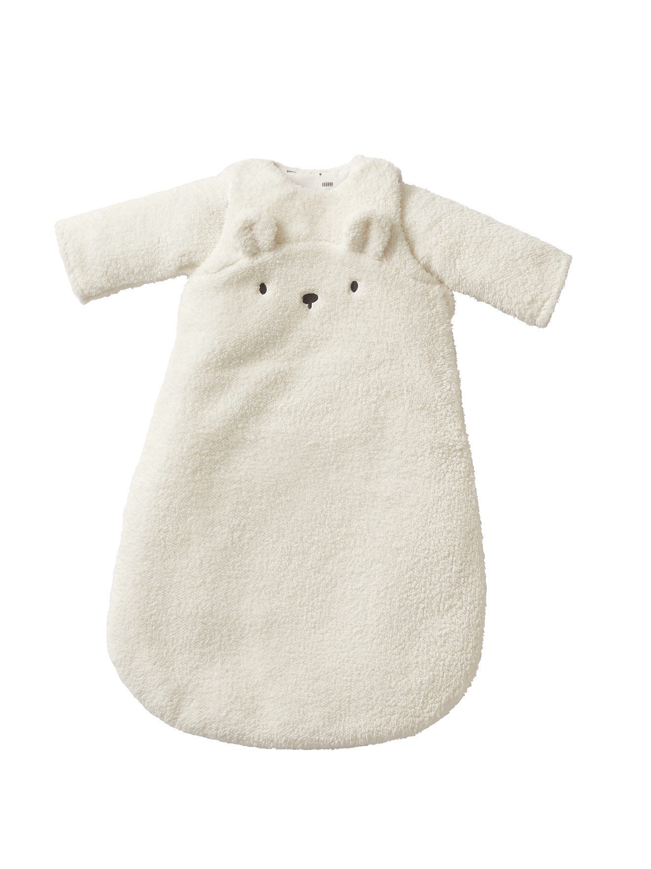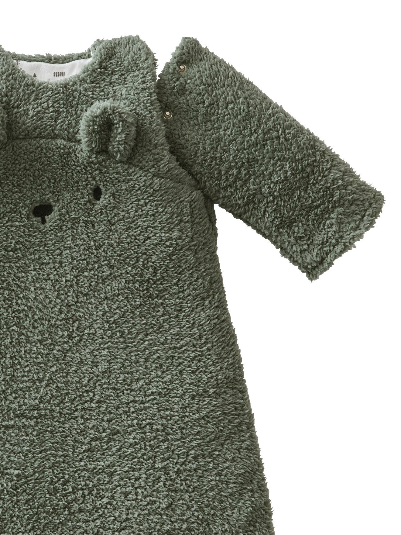Fell-Imitat Gesticktes Gesicht und 3D-Ohren Durchgehender Reißverschluss Lange, abnehmbare Ärmel, Befestigung mit Druckknöpfen Durchgehendes Futter Bedruckter Einsatz im Nacken TOG 3, mehr Informationen findest du in unserem Schlafsack-Ratgeber.