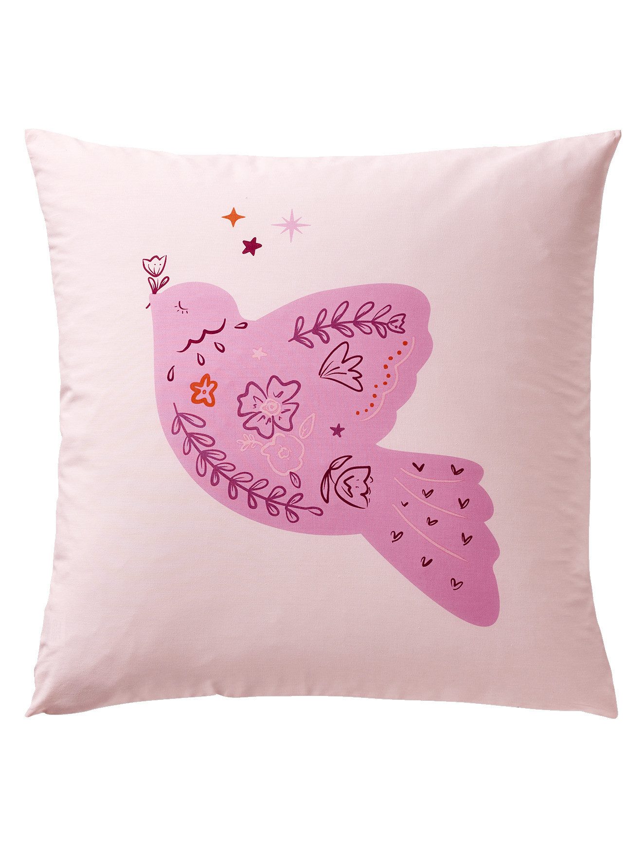 Details: Wende-Kissenbezug: Hotelverschluss. 1 Seite mit Schwalben-Motiv, 1 Seite mit kleinen Mond- und Sternen-Motiven. Wende-Bettbezug: Breiter Umschlag am Fußende. 1 Seite mit Schwalben-Motiv, 1 Seite mit kleinen Mond- und Sternen-Motiven. Schriftzug auf Französich heißt ,,Eine ruhige Nacht unter den Sternen".