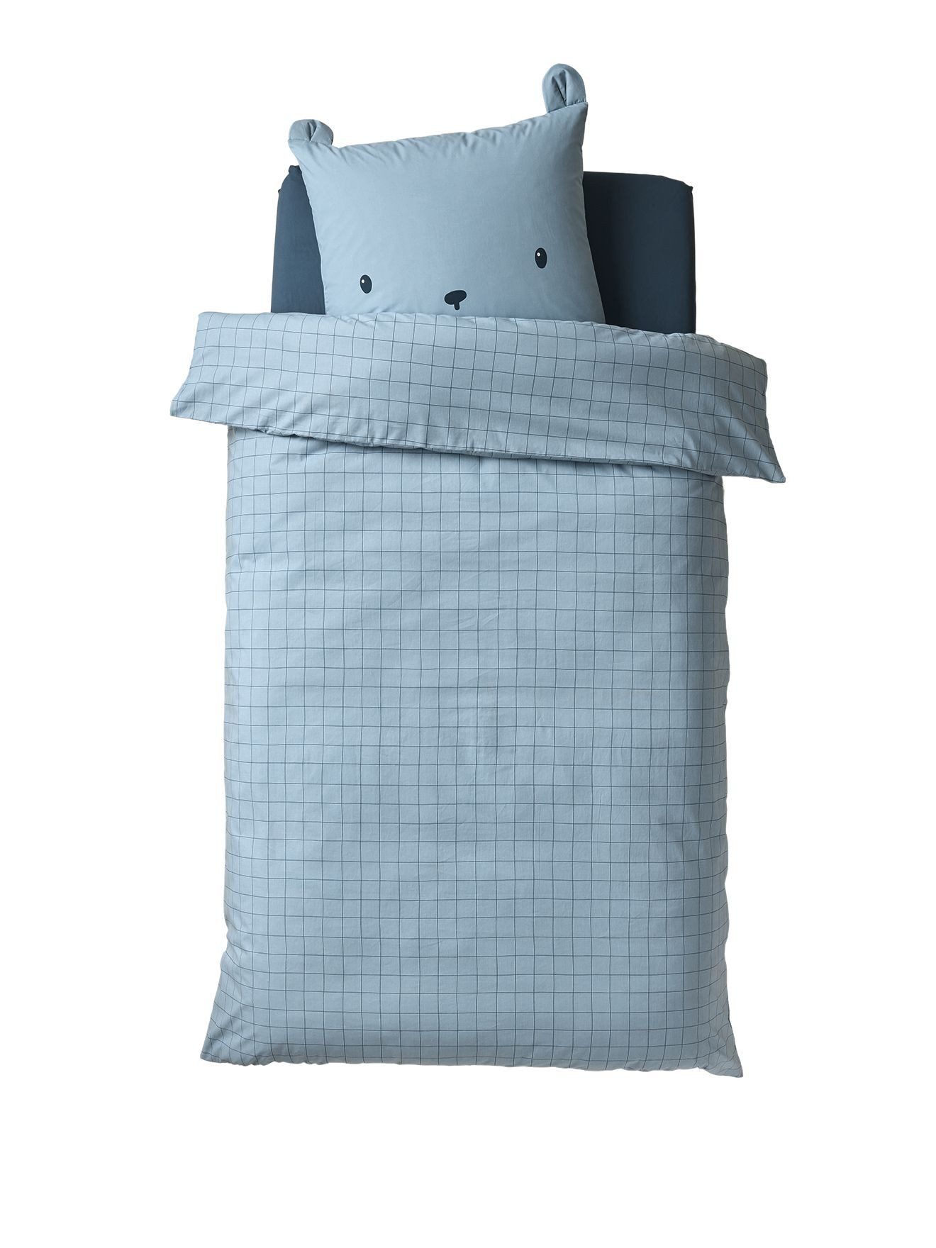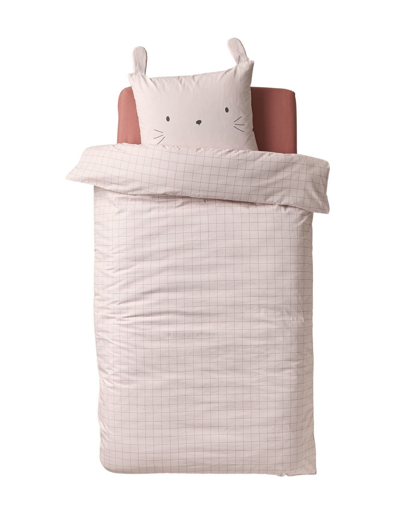 Details: Einsätze an den Seiten, damit sich das Kind nicht freistrampelt und genug Platz hat Befestigung auf der Matratze mit Gummizügen: Erst die Bettdecke in den Bezug einziehen, dann die Gummizüge um die Matratze ziehen Schlitze an den Ecken erleichtern das Beziehen Bettbezug beidseitig kariert Kissenbezug einfarbig mit aufgedrucktem Gesicht an Vorder- und Rückseite und wattierten Ohren Exklusiv bei vertbaudet