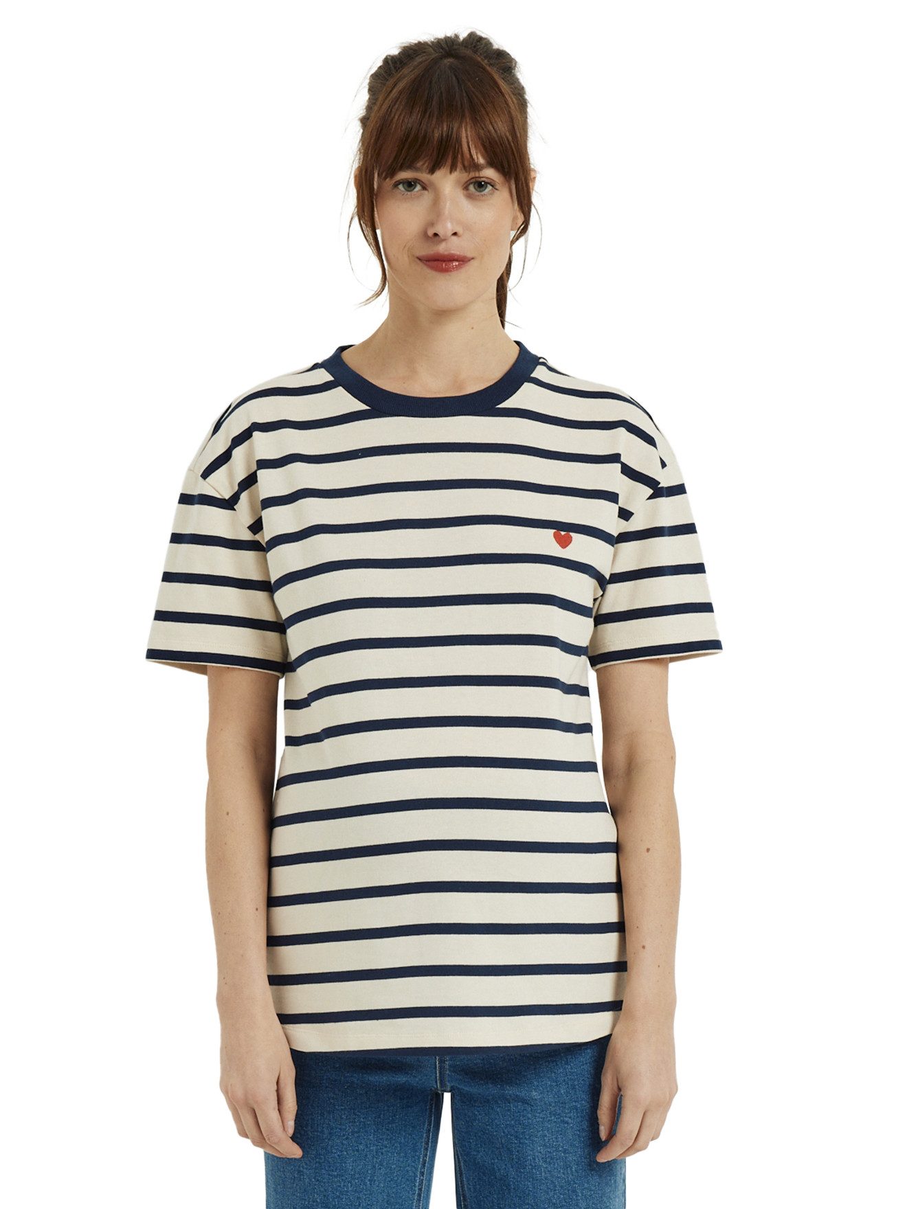 Bequem und trendy durch die Schwangerschaft mit klassischen Streifen und einem kleinen Stick-Herz!