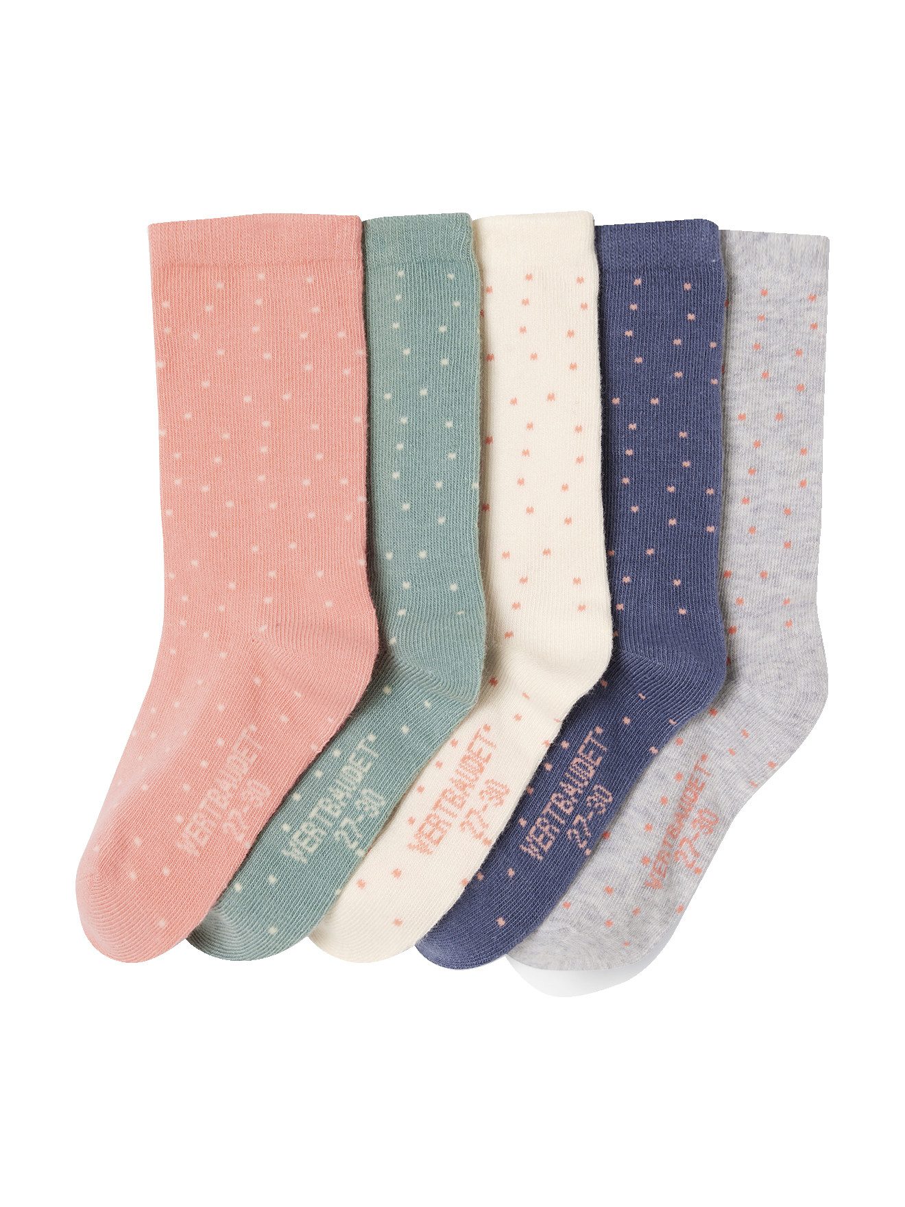 5 Paar, farblich sortiert mit Tupfen allover Zehen und Ferse einfarbig Weicher, robuster Strick Rippbündchen