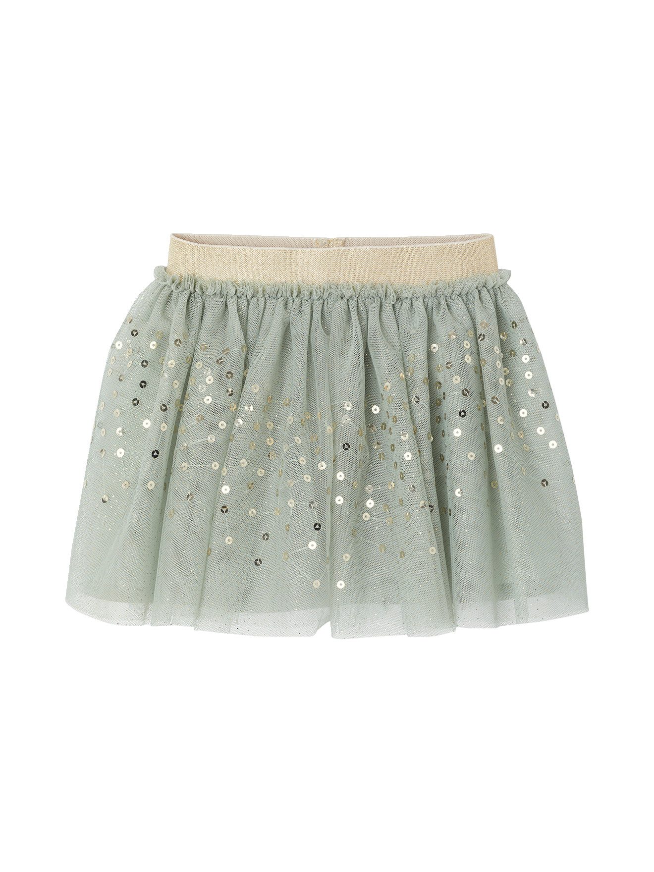 Besonderheiten: Raffinierter Zweiteiler für besondere Anlässe - im Alltag lässt sich das süße Retro-Shirt auch solo tragen! Der duftige Tüllrock ist mit funkelnden Pailletten besetzt.