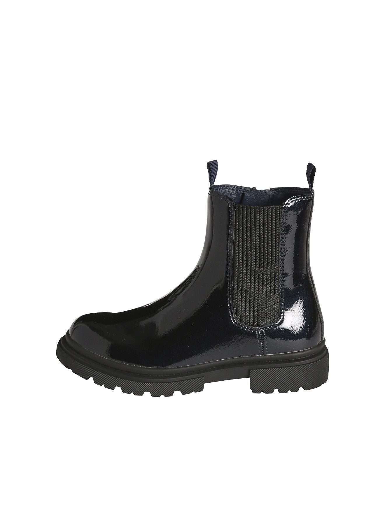 Details: Obermaterial in Lack-Optik Rutschhemmende, robuste und flexible Profilsohle Reißverschluss mit Stopper an der Innenseite Breiter Dehneinsatz an der Außenseite für bequemen Halt Fersenverstärkung für mehr Stabilität Anziehlasche an der Ferse