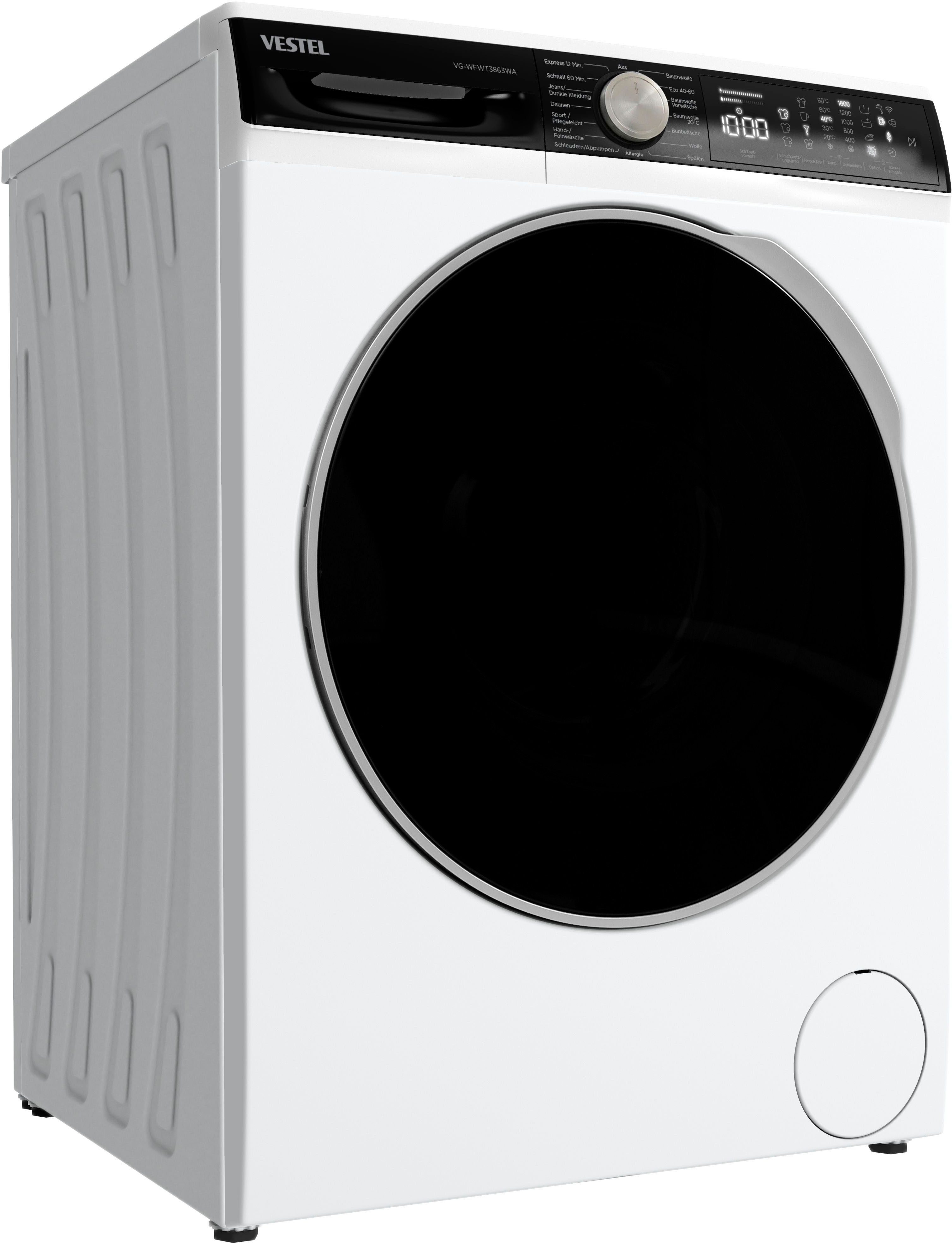 Mit der VG-WFWT3863WA bietet VESTEL eine leistungsstarke Waschmaschine. Ausgezeichnet mit der Energieeffizienzklasse A (Skala: A bis G) fällt der Energiebedarf dieser Waschmaschine äußerst gering aus. Die Kapazitätsanforderungen von Familien mit bis zu 4 Personen stellen mit einem 8 kg Fassungsvermögen kein Problem dar. Der eingebaute Invertermotor garantiert eine geräuscharme und langlebige Arbeitsweise. Über die Startzeitvorwahl ist es möglich, das Programm der VG-WFWT3863WA Waschmaschine so einzustellen, dass die Wäsche fertig ist, wenn man zum Beispiel von der Arbeit nach Hause kommt. Über die Restlaufanzeige ist jederzeit erkennbar, wie viel Zeit von der Waschmaschine noch für den laufenden Waschgang gebraucht wird. Mit dem verbauten Wasserschutzsystem "Aqua Stop" schützt die VG-WFWT3863WA Waschmaschine Haushalte vor kostspieligen Wasserschäden. Die Maße der Waschmaschine betragen 60 cm x 85 cm x 56 cm (BxHxT).