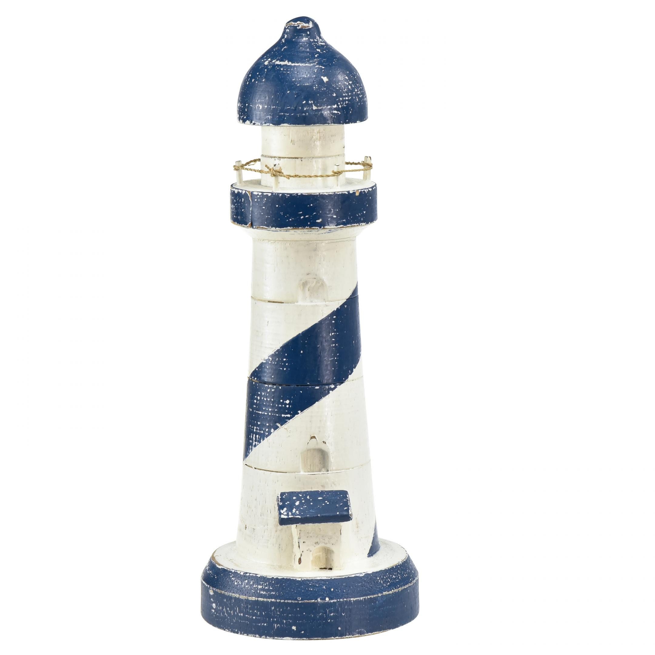 Verleihen Sie Ihrem Zuhause mit diesem entzückenden Leuchtturm aus Holz das gewisse Etwas! Im maritimen Look in Blau und Weiß gehalten, passt er perfekt zu jeder Tischdekoration und sorgt für ein nostalgisches Gefühl.