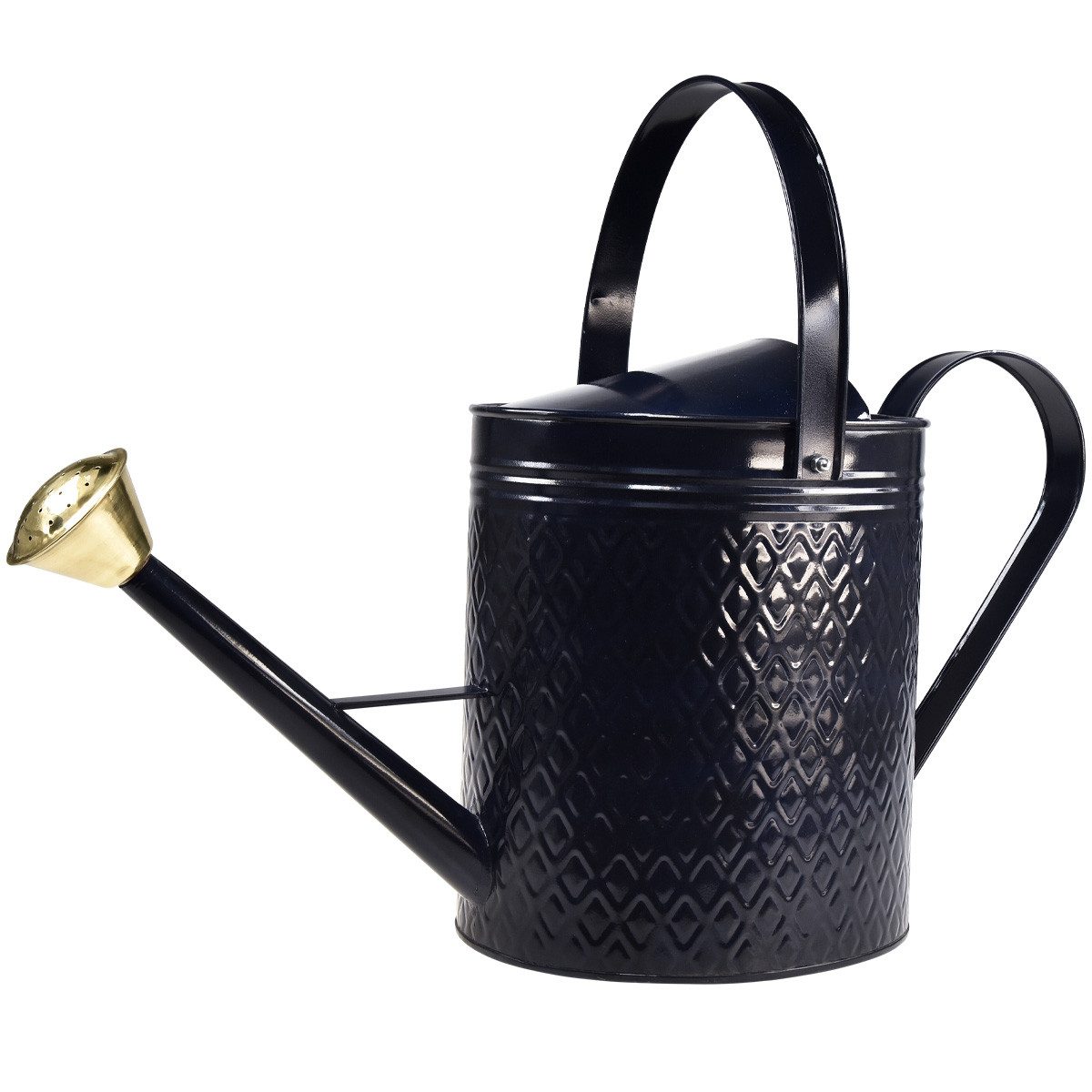Entdecken Sie mit unserer Deko Gießkanne im Retro-Look einen echten Blickfang für Ihr Zuhause. In dunkelblau mit goldenen Akzenten und einem attraktiven Karo-Muster schmückt sie jeden Wohnraum und Balkon. Der flexible Henkel und die abnehmbare Tülle kombinieren Funktionalität mit Stil.