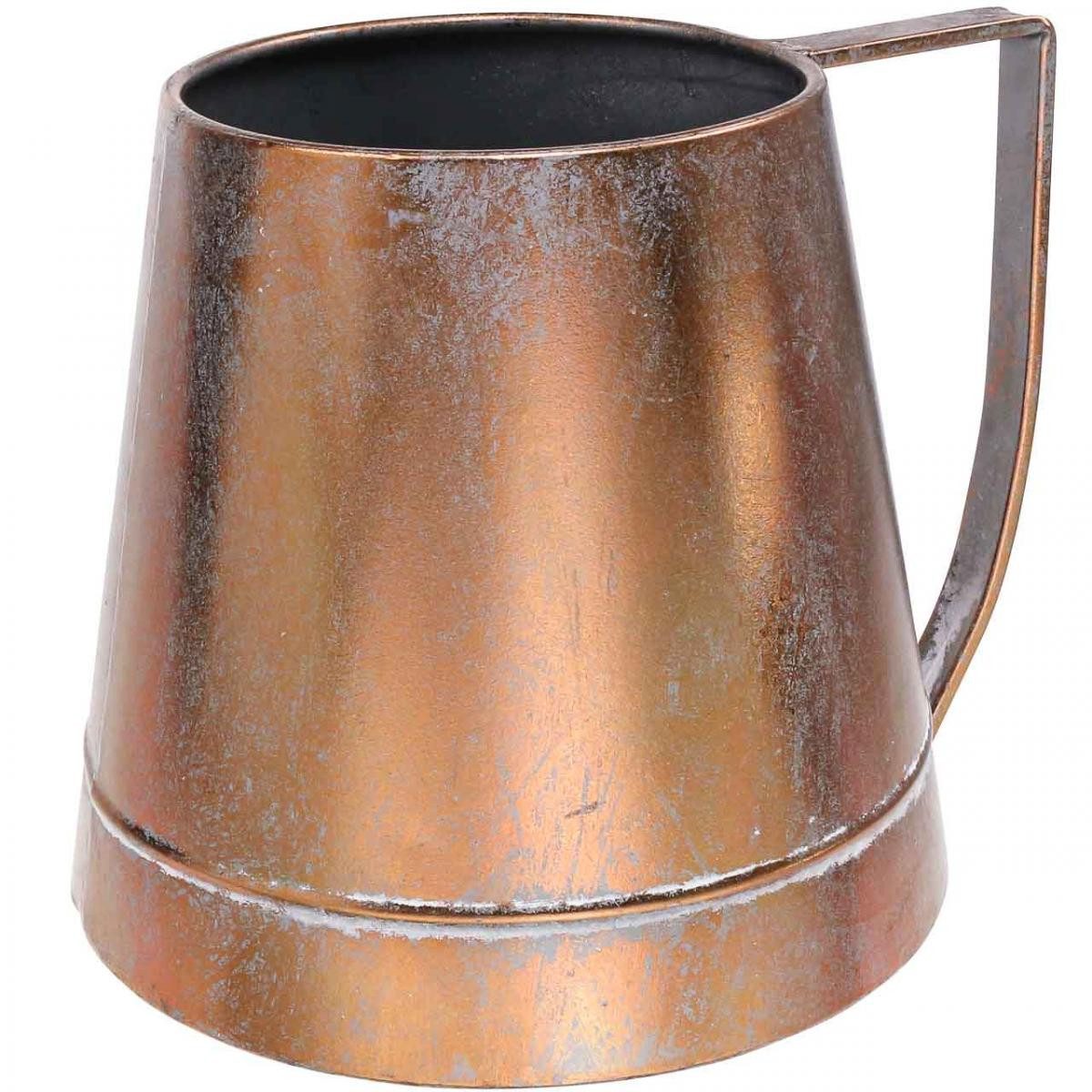 Mit ihrer bauchigen Form und dem charakteristischen Henkel bereichert diese Vase jeden Landhausstil. Ob mit Trockenblumen oder künstlichen Trockengräsern – sie verleiht Ihrer Umgebung eine warme, heimelige Atmosphäre. Die kupferne Farbgebung und künstlichen Gebrauchsspuren unterstreichen die nostalgische Optik und machen jeden Krug zu einem Unikat.