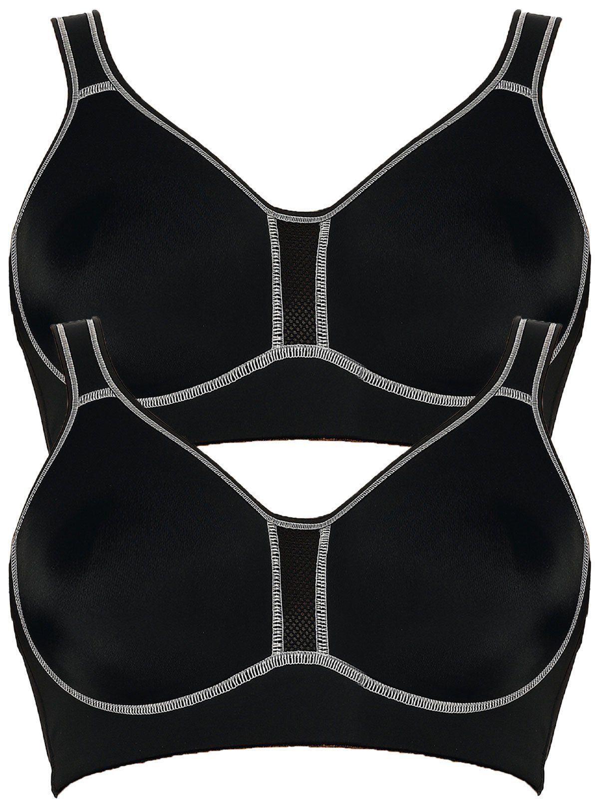 2er Pack Sport BH von der Marke VIANIA aus der Serie Performance. Besondere Merkmale des Artikels sind Sport-BH ohne Bügel, für sportliche Aktivitäten mit mittlerer Intensität, optimale Feuchtigkeitsregulierung durch CoolQuick Material, breite und verstellbare Träger und breiter Rückenverschluss bei allen Größen. Viania ist eine deutsche Traditionsmarke seit 1991, spezialisiert auf hochwertige feminine Wäsche und Dessous.
