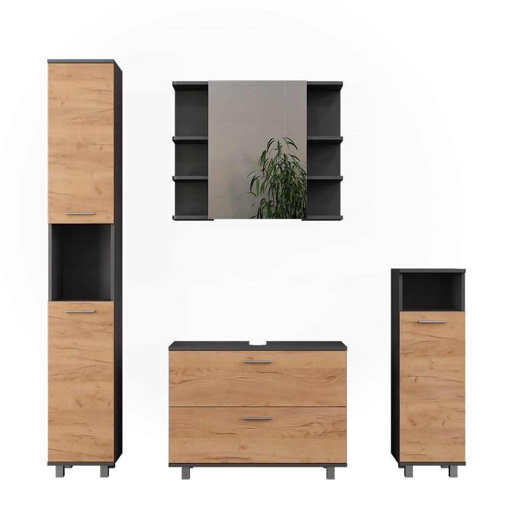 LIEFERUMFANG: Hochschrank, Unterschrank, Midischrank, Spiegelschrank, Montageanleitung, Montagematerial (Dekoration nicht enthalten).#27790