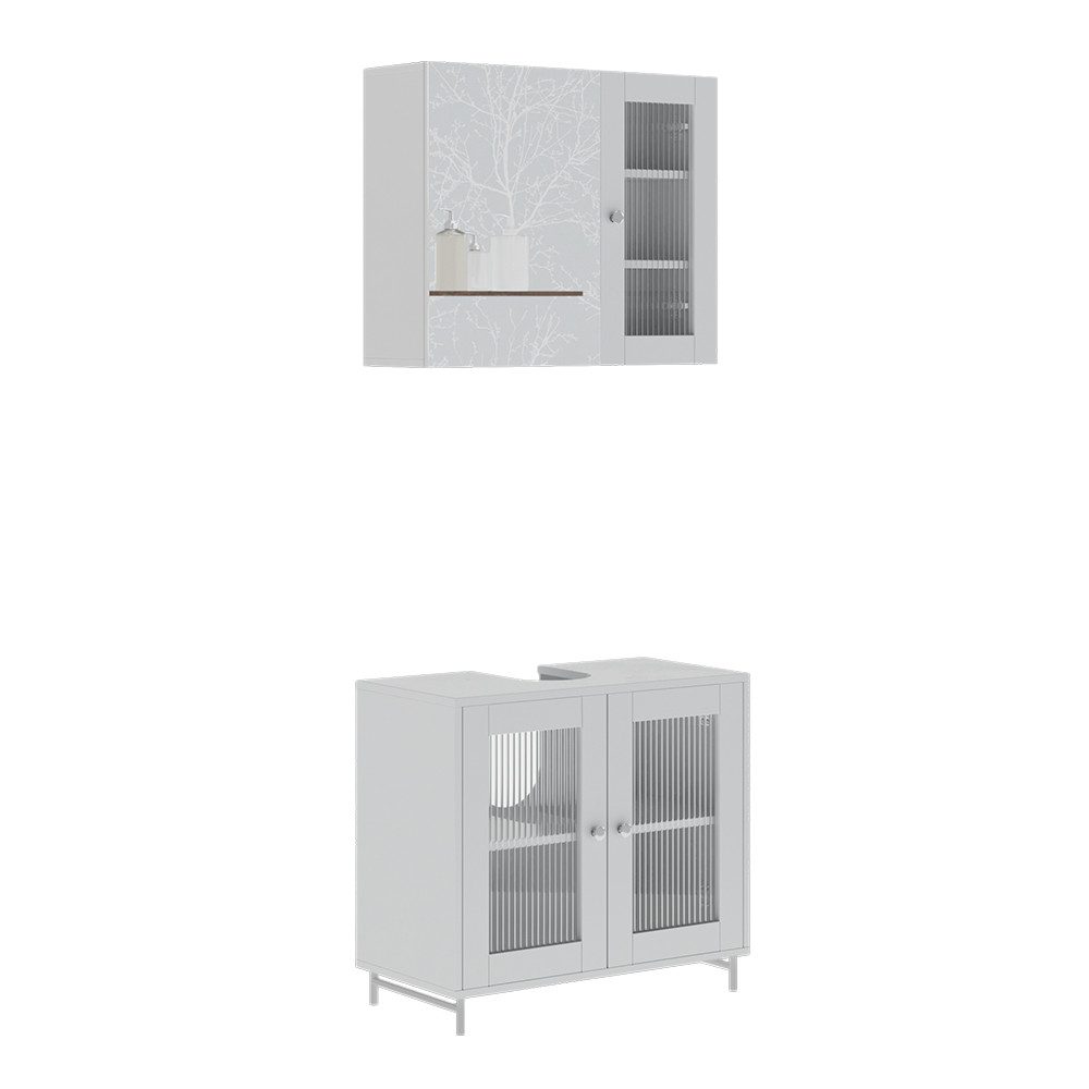 LIEFERUMFANG: Waschbeckenunterschrank, Badspiegelschrank, Montageanleitung, Montagematerial (Dekoration nicht enthalten)#26565