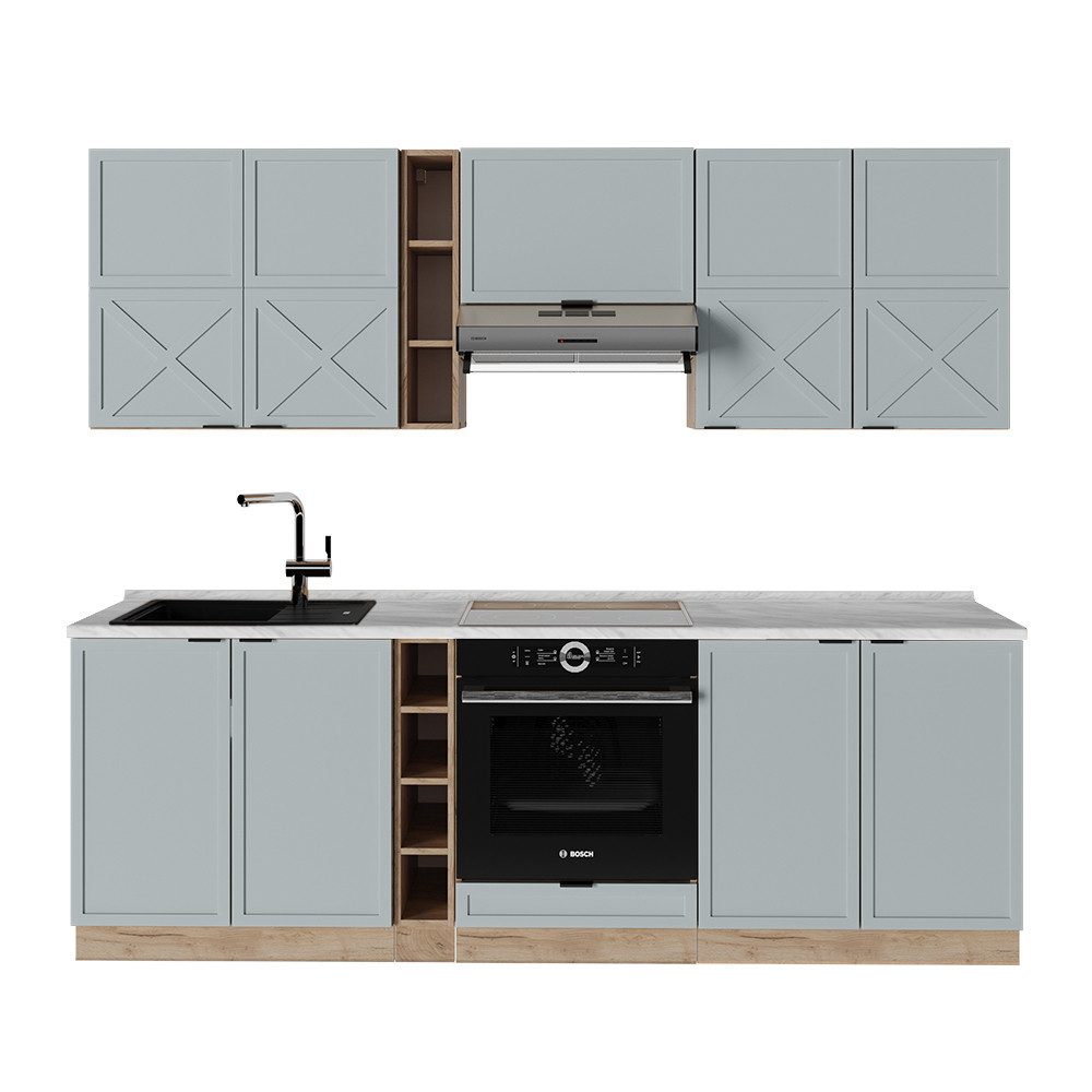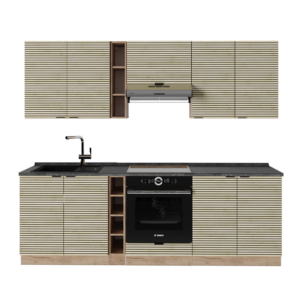 LIEFERUMFANG: Küchenblock ohne Arbeitsplatte, Montagematerial, Montageanleitung (Sofern nicht anders angegeben, gehören Elektrogeräte und Dekorationen nicht zum Lieferumfang)#29730
