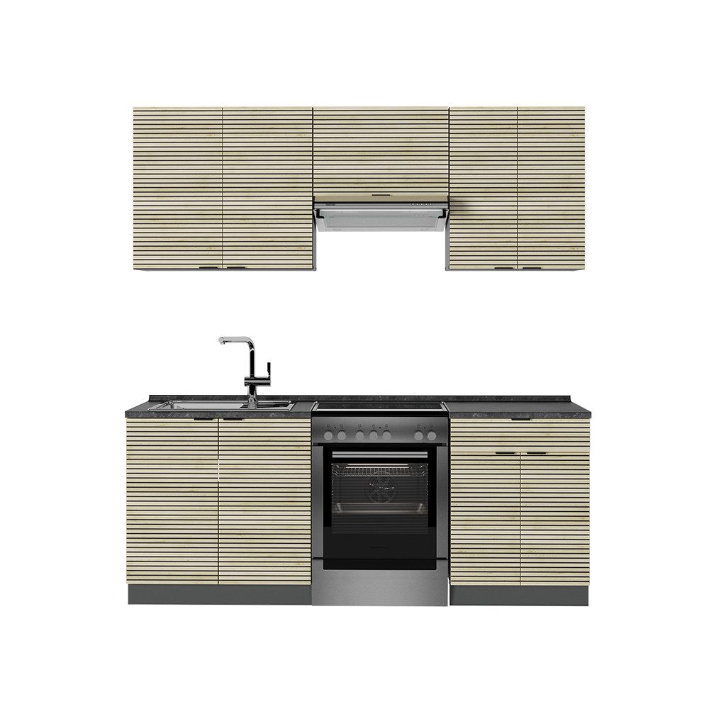 LIEFERUMFANG: Küchenblock ohne Arbeitsplatte, Montagematerial, Montageanleitung (Sofern nicht anders angegeben, gehören Elektrogeräte und Dekorationen nicht zum Lieferumfang)#5854