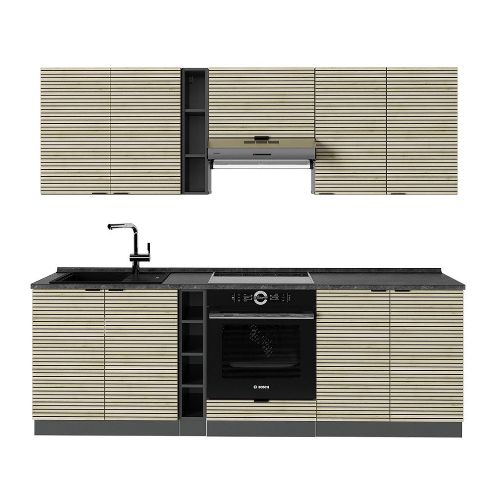 LIEFERUMFANG: Küchenblock ohne Arbeitsplatte, Montagematerial, Montageanleitung (Sofern nicht anders angegeben, gehören Elektrogeräte und Dekorationen nicht zum Lieferumfang)#5986