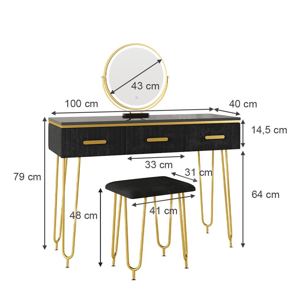 LIEFERUMFANG: Schminktisch, LED-Spiegel, Hocker, Montageanleitung, Montagematerial.#5005