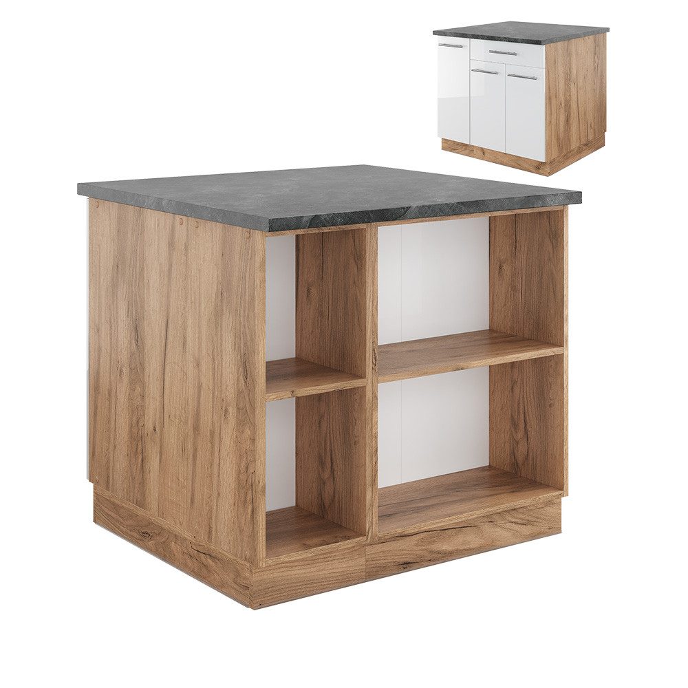 LIEFERUMFANG: Kücheninsel (Sofern nicht anders angegeben, gehören die Arbeitsplatten, Elektrogeräte und Dekoration nicht zum Lieferumfang), Montageanleitung, Montagematerial#28871