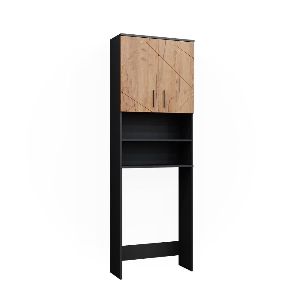 Sie haben sich endlich den Traum vom eigenen Bad erfüllt, doch die Waschmaschine stört das harmonische Gesamtbild? Dann haben wir die Lösung: Unseren Waschmaschinenschrank! Dieser Badschrank verschönert Ihr Bad durch sein funktionales Design und bietet dabei jede Menge Stauraum. Offene Fächer bieten Platz für Handtücher und Pflegeprodukte, während geräumige, geschlossene Fächer Platz für Wasch- und Reinigungsmittel bieten. Die Öffnung für die Waschmaschine macht das Be- und Entladen zum Kinderspiel. Durch die Farbkombination passt der Schrank perfekt in jedes moderne Badezimmer.