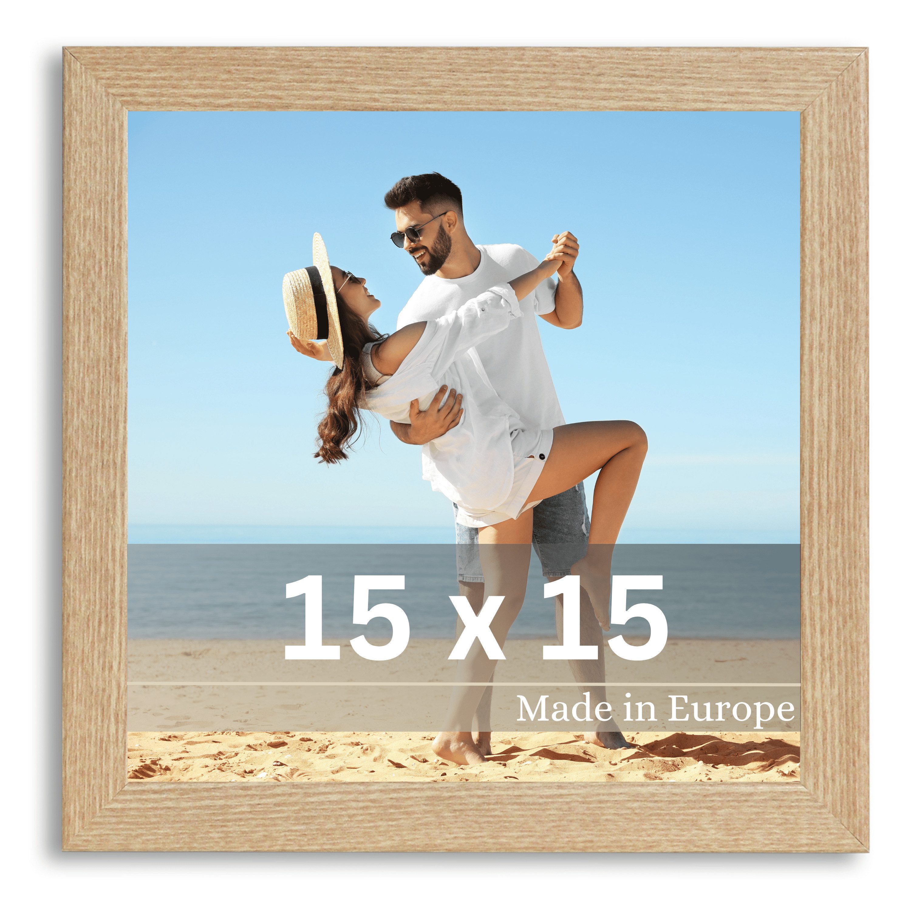 Der Rahmen besteht aus hochwertigem Holz und ist mit einer bruchsicheren Acrylglas-Frontscheibe ausgestattet, die für eine klare und unverfälschte Sicht auf Ihr Bild sorgt. Die stabile MDF-Rückwand ermöglicht eine flexible Nutzung: Bis zur Размер 21x30 cm können Sie den Rahmen sowohl aufstellen als auch aufhängen, größere Formate sind zur Wandmontage vorgesehen.