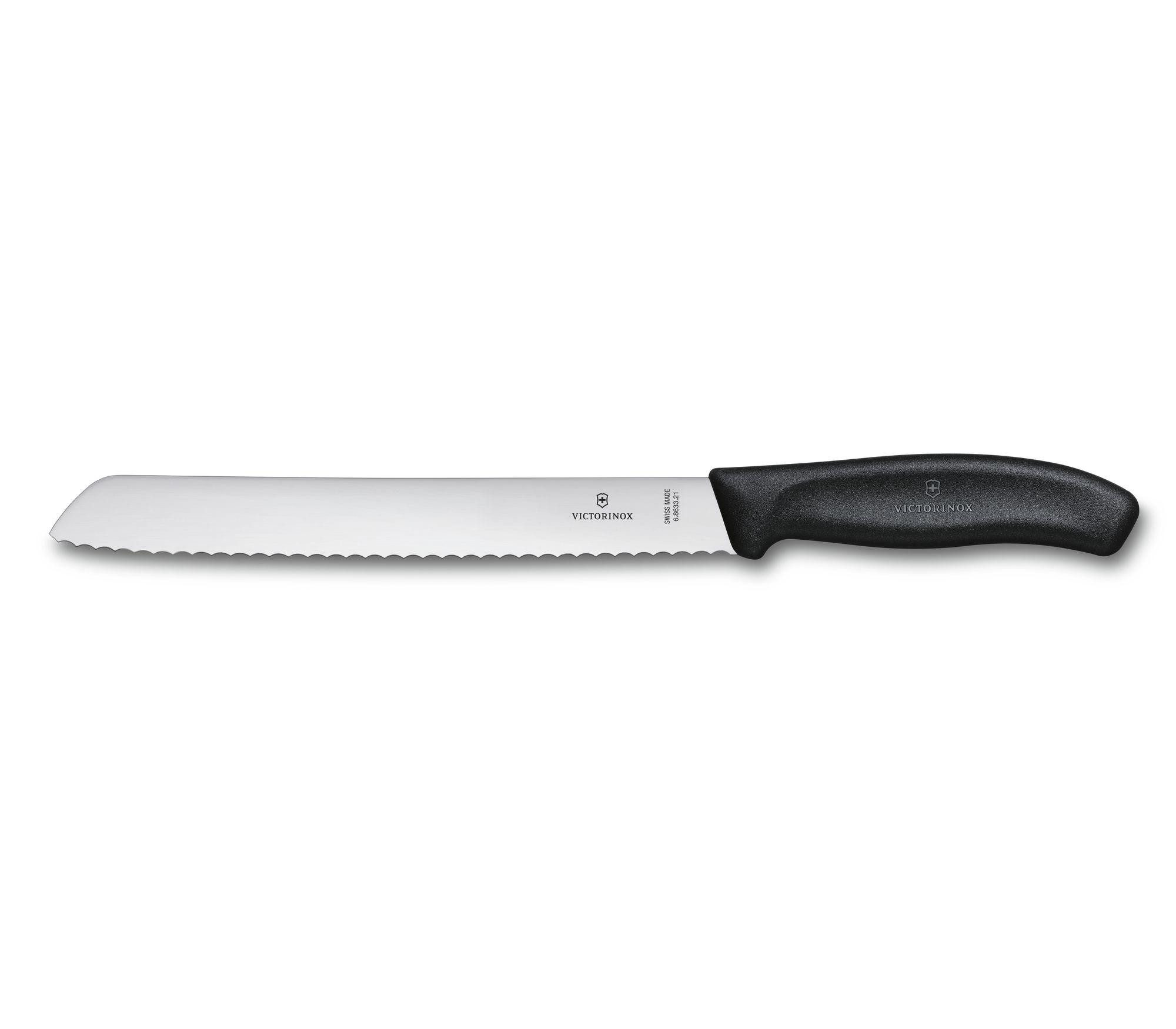 Brotmesser mit ergonomischem Griff und Wellenschliff Wie wichtig ist ein gutes Brotmesser? Oder besser gefragt: Wie viele Scheiben Brot werden Sie in Ihrem Leben schneiden? Vermutlich ziemlich viele. Deshalb lohnt sich ein gutes Brotmesser. Das Victorinox Brotmesser garantiert dank seinem Wellenschliff und ergonomischen Griff einen mühelosen und präzisen Schneidvorgang – ausnahmslos. Die Klinge bleibt sehr lange scharf, also können Sie damit schneiden und schneiden und noch mehr schneiden. Hauptmerkmale Schneidet mühelos harte Krusten und feste Schalen Brotmesser mit Wellenschliff, hergestellt in der Schweiz Mit extra scharfem Wellenschliff und ergonomischem Griff Dimensionen Höhe 20 mm Nettogewicht 90 g Details Klingenlänge 21 cm Griffmaterial Thermoplastische Elastomere (TPE) Klingentyp Wellenschliff Spülmaschinengeeignet Ja