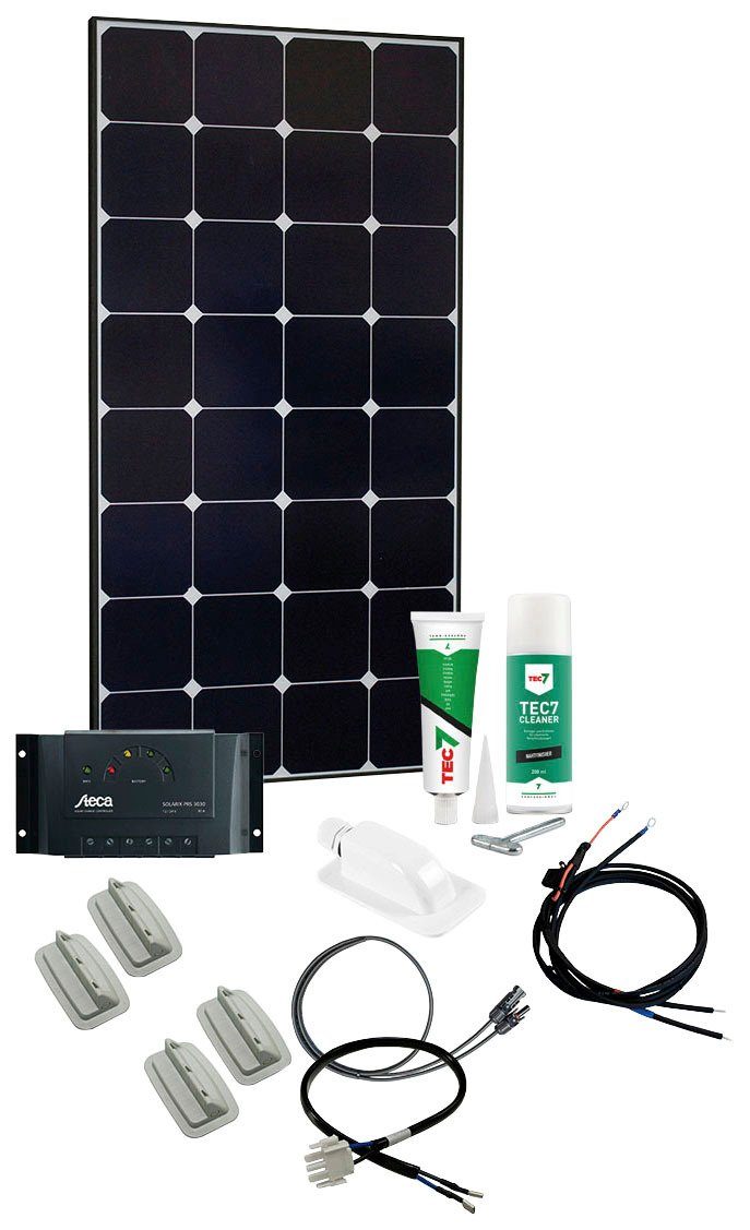 Set beinhaltet | 12 VDC, 1x Solarmodul 120 W, 1x Solarladeregler Schaudt LR 1218, 1x Modulbefestigung Kit Easy Mount One, 1x Dachdurchführung, 1x Klebeset Easy Bond One, 5 m Modulkabel QuickCab4, 1,5 m Batteriekabel mit Sicherung (20 A), 1x Adapterkabel für EBL |