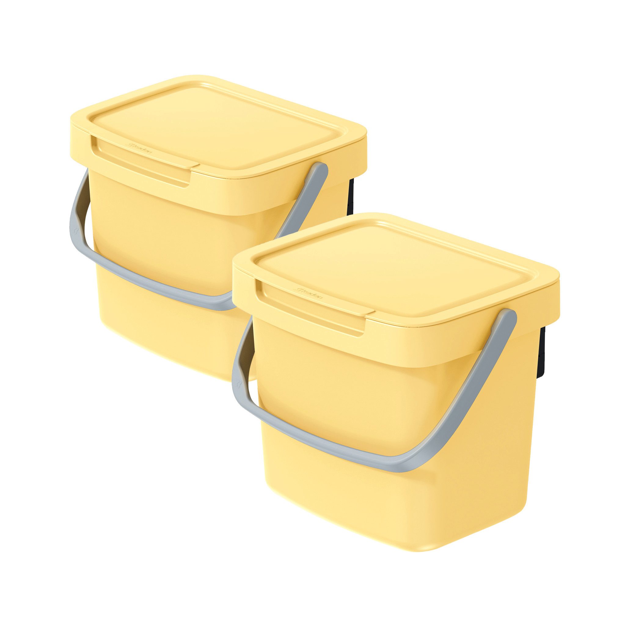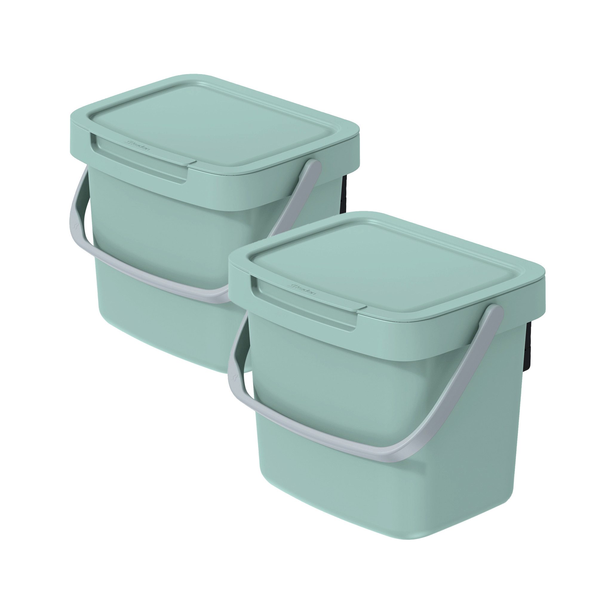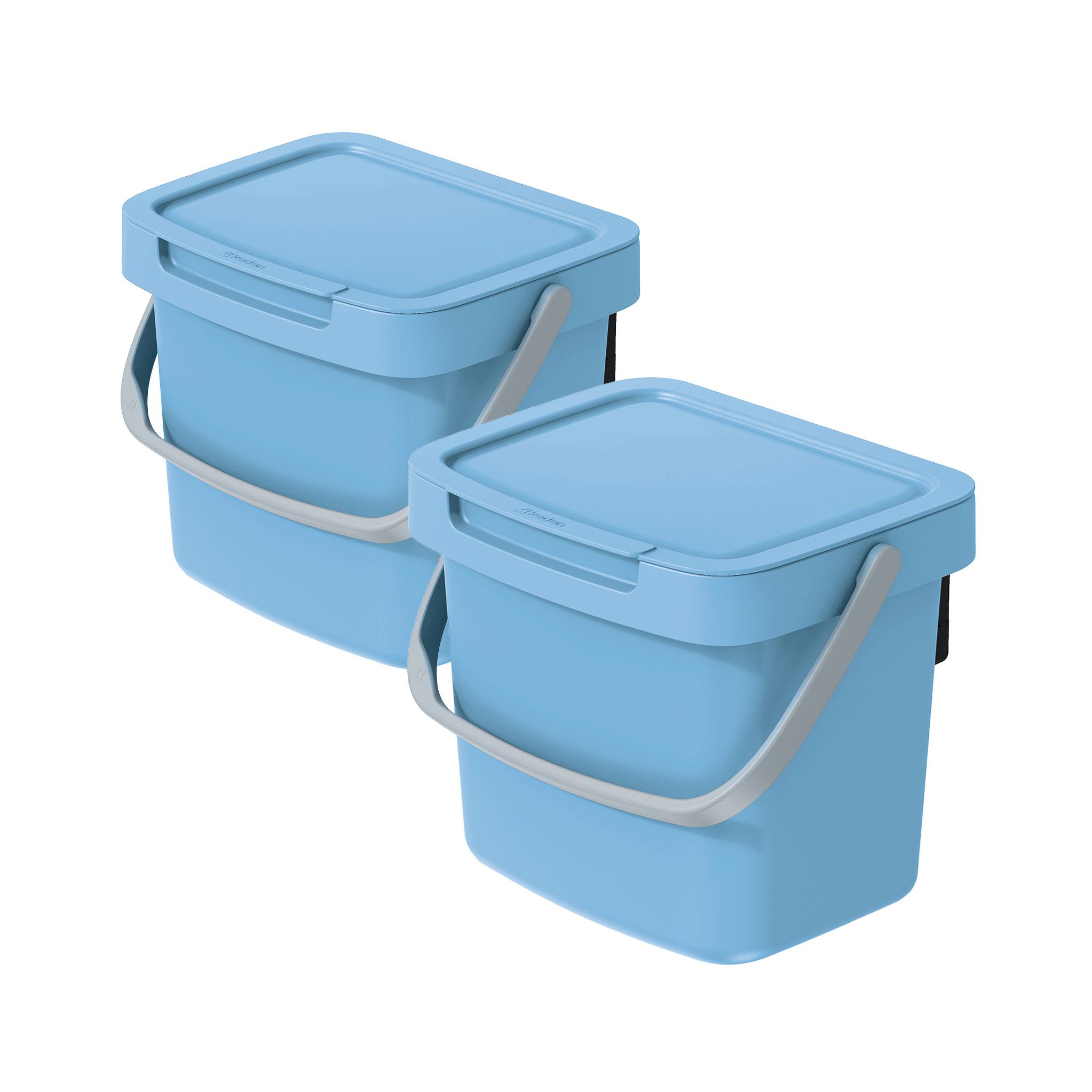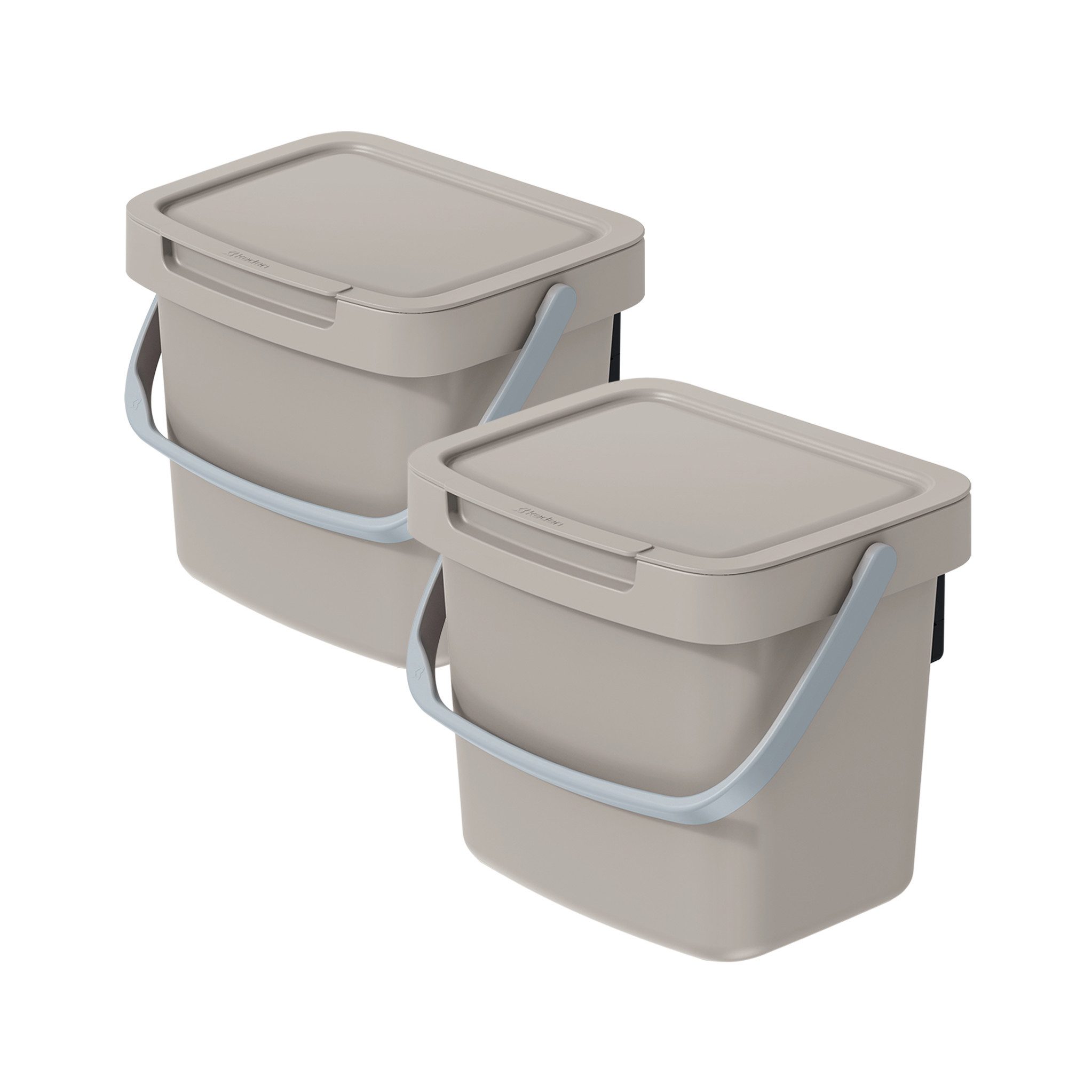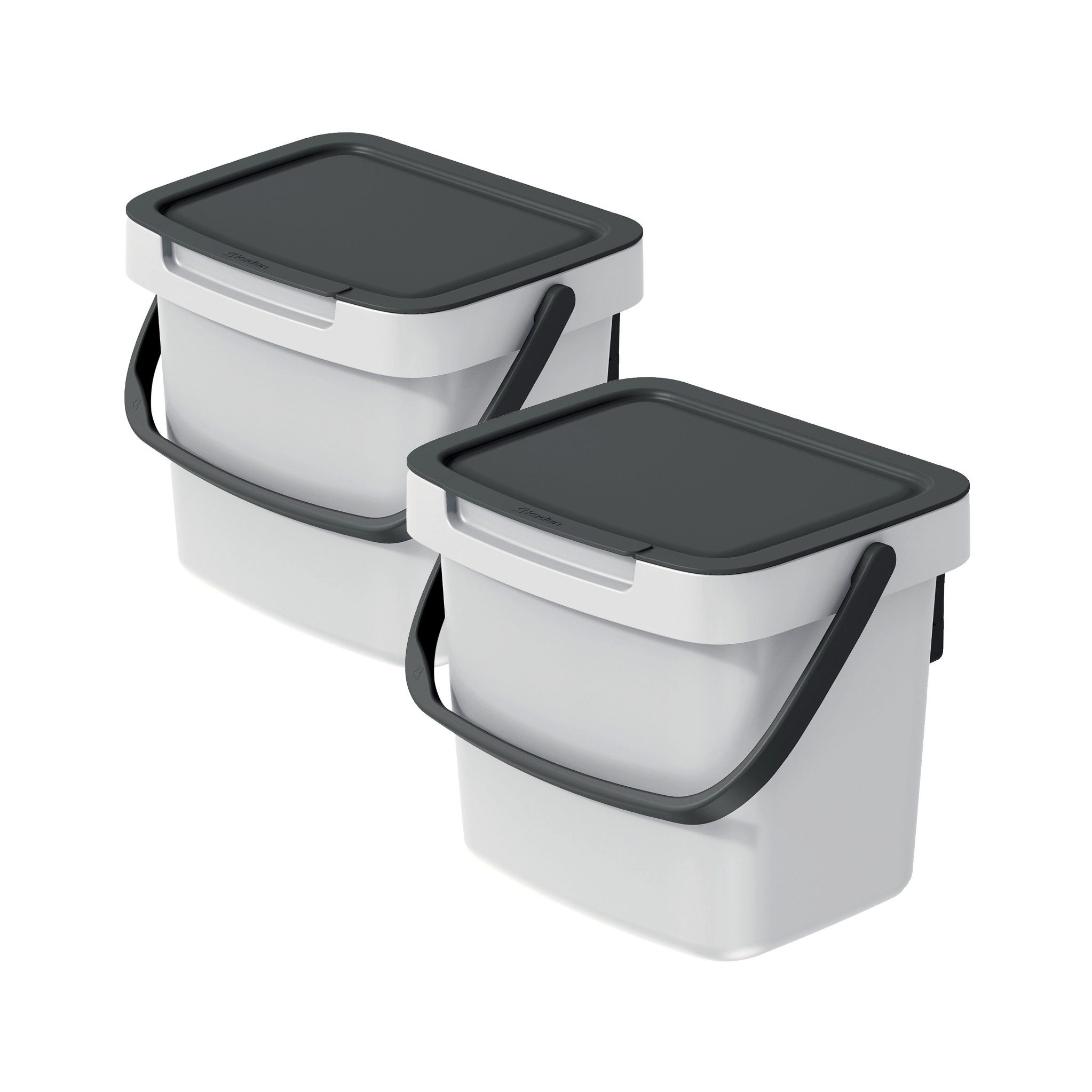 Das Set besteht aus zwei 3 Liter Q-Systema Abfalleimern in der selben Farbe.