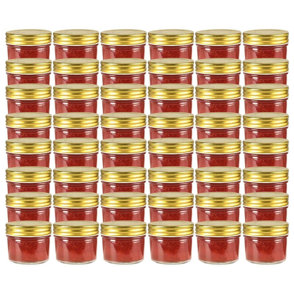 Die Marmeladengläser haben ein Fassungsvermögen von bis zu 110 ml. Sie stellen eine ideale Lösung für die Aufbewahrung von Chutney, Marmeladen, Essiggurken, Saucen, Konfitüren usw. dar. Diese Marmeladengläser aus transparentem Glas haben ein einfaches und klares Aussehen und ermöglichen eine einfache Überwachung und Identifizierung. Der weite Mund sorgt dafür, dass Sie Marmeladen einfach und schnell hineinlegen bzw. herausnehmen können. Darüber hinaus sind die Glasbehälter mit einem goldenen Deckel gut verschlossen, sodass Ihre Konfitüren länger frisch bleiben. Die Lieferung umfasst 48 Einmachgläser.