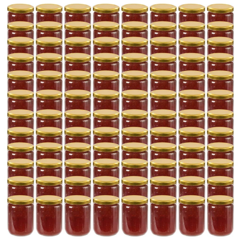 Die Marmeladengläser haben ein Fassungsvermögen von bis zu 230 ml. Sie stellen eine ideale Lösung für die Aufbewahrung von Chutney, Marmeladen, Essiggurken, Saucen, Konfitüren usw. dar. Diese Marmeladengläser aus transparentem Glas haben ein einfaches und klares Aussehen und ermöglichen eine einfache Überwachung und Identifizierung. Der weite Mund sorgt dafür, dass Sie Marmeladen einfach und schnell hineinlegen bzw. herausnehmen können. Darüber hinaus sind die Glasbehälter mit einem goldenen Deckel gut verschlossen, sodass Ihre Konfitüren länger frisch bleiben. Die Lieferung umfasst 96 Einmachgläser.