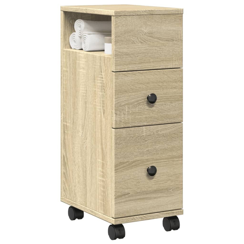 Modellbezeichnung | Schmaler Badschrank mit Rad Schwarze Eiche 33 x 23 x 65 cm |