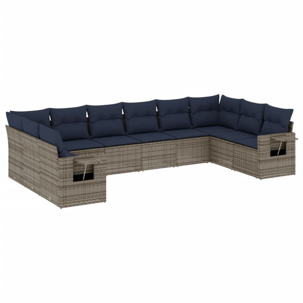 vidaXL Gartenlounge-Set 10-teiliges Gartensofa-Set mit Kissen, braun, Polyrattan, (1-tlg)