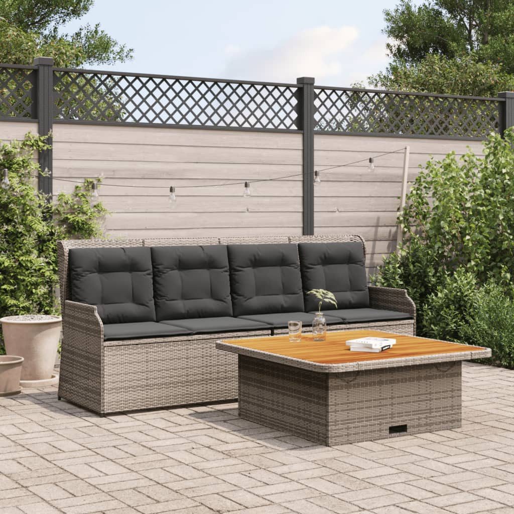 Dieses Garten-Lounge-Set ist die perfekte Ergänzung zu deinem Garten, deiner Terrasse oder deinem Innenhof. Es bietet einen bequemen und einladenden Platz, um mit Familie und Freunden zu plaudern oder dich einfach nur zu entspannen und das Leben im Freien zu genießen. Langlebiges Material: PE-Rattan, auch als Poly Rattan bekannt, ist ein robustes, pflegeleichtes synthetisches Material, das die Optik von natürlichem Rattan aufweist. Es kennzeichnet sich durch ein geringes Eigengewicht und lässt sich einfach reinigen. Aufgrund seiner Haltbarkeit und Witterungsbeständigkeit wird es häufig bei der Herstellung von Gartenmöbeln verwendet.Verstellbare Rückenlehne: Du kannst die Rückenlehne durch Betätigung des Griffes verstellen und sie danach schnell wieder in ihre ursprüngliche Position bringen.Abnehmbarer und waschbarer Bezug: Diese Sitzkissen verfügen über abnehmbare Bezüge für einfaches Waschen und Pflegen.Bequemes Sitzerlebnis: Dieser Gartensessel mit dick gepolsterten Kissen bietet ein angenehmes Sitzgefühl.Stabile und pflegeleichte Tischplatte: Dieser Gartentisch besitzt eine Tischplatte aus Akazienholz, die robust und langlebig ist und sich leicht mit einem feuchten Tuch reinigen lässt.Robustes und stabiles Gestell: Der pulverbeschichtete Stahlgestell ist stark, stabil, langlebig sowie korrosions- und wetterbeständig, um eine lang anhaltende Leistung zu gewährleisten. Gut zu wissen:Wir empfehlen dir, deine Gartenmöbel mit einer wasserdichten Hülle zu schützen, um lange Zeit eine ansprechende Optik aufzuweisen.