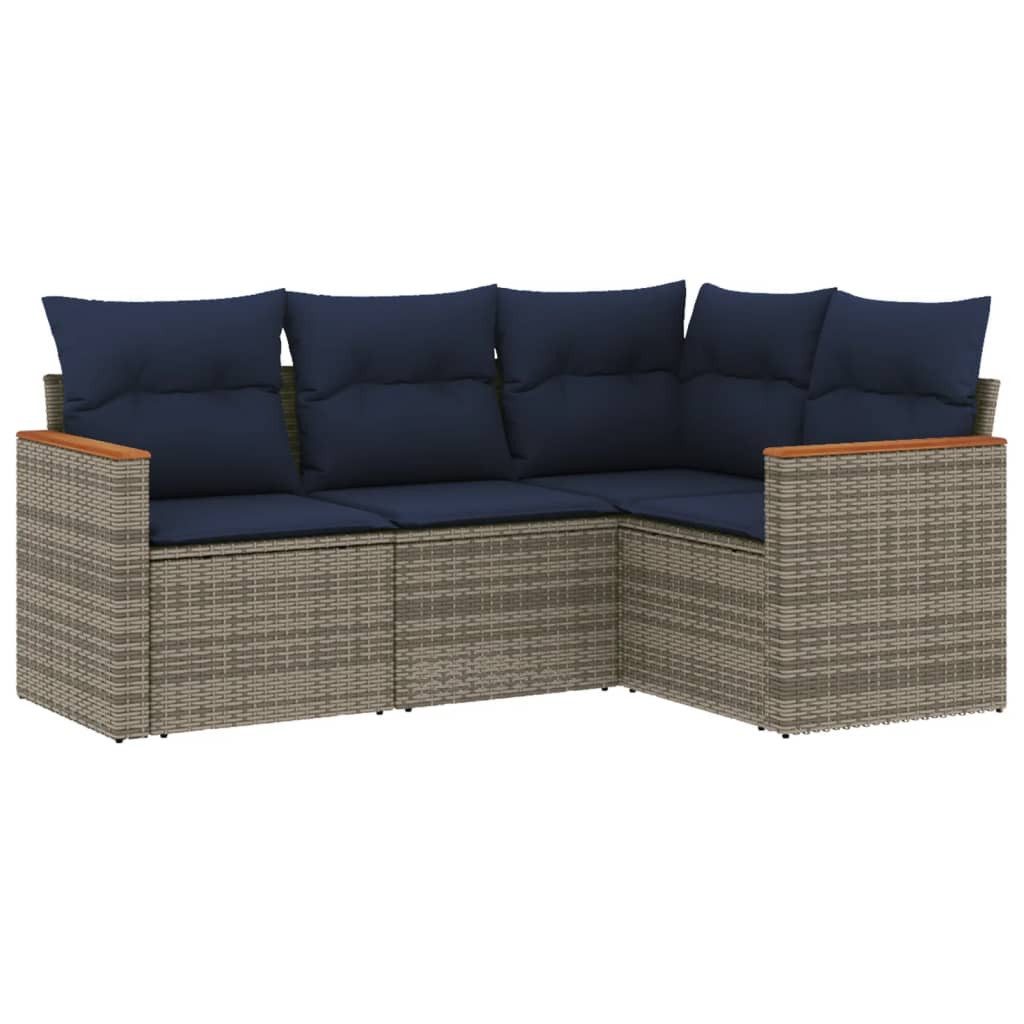 vidaXL Gartenlounge-Set 4-teiliges Gartensofa-Set mit Kissen, grau, Polyrattan, (1-tlg)