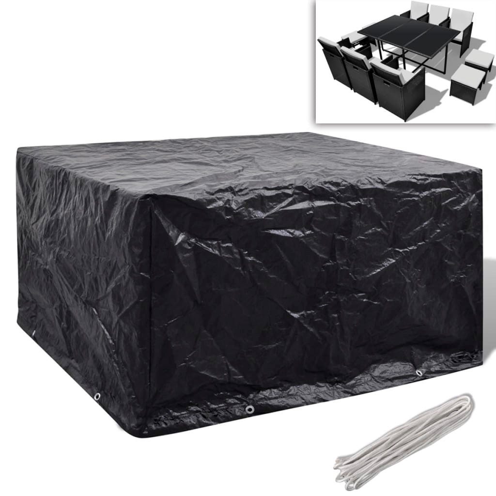 Diese hochwertige Gartenmöbel-Abdeckplane eignet sich das ganze Jahr über zum Schutz deiner Rattan-Gartenmöbel vor Schmutz, Wind, Regen und UV-Strahlung. Die Abdeckplane besteht aus strapazierfähigem Polyethylen, das wasserfest, UV-beständig, reißfest und damit für den täglichen Gebrauch geeignet ist. Die Plane ist mit 8 Aluminiumösen und einem Befestigungsseil ausgestattet, so dass du diese sicher anbringen kannst. Die Abdeckhaube ist für unser 6-Personen-Möbel-Set (SKU 40923 / 40836) geeignet. Du kannst diese Abdeckung auch für andere Gartenmöbel-Sets verwenden, solange sie von der Размер her passt. Hinweis: Dieses Produkt ist nicht 100% wasserdicht. Wir empfehlen daher, es mit einem wasserfesten Spray zu behandeln, um eine bessere Wasserdichtigkeit zu gewährleisten.