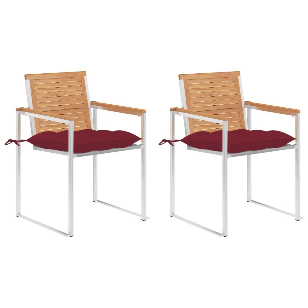 Das für dieses Möbelstück verwendete holz ist technisch getrocknet und anschließend fein geschliffen worden, um ein sehr glattes Erscheinungsbild zu erhalten. ist für seine außergewöhnliche Festigkeit und Witterungsbeständigkeit geschätzt und eignet sich daher weitaus besser für Gartenmöbel als jede andere Holzart. -Massivholz ist die perfekte Wahl, wenn Sie sich ein langlebiges Gartenmöbelstück anschaffen möchten. Die Stühle sind ebenfalls aus hochwertigem Edelstahl 304 gefertigt, wodurch sie rostfrei und leicht zu reinigen sind. Zudem bietet das Kissen zusätzlichen Komfort beim Faulenzen. Jedes Kissen hat zwei Bänder zur Befestigung am Gartenstuhl.