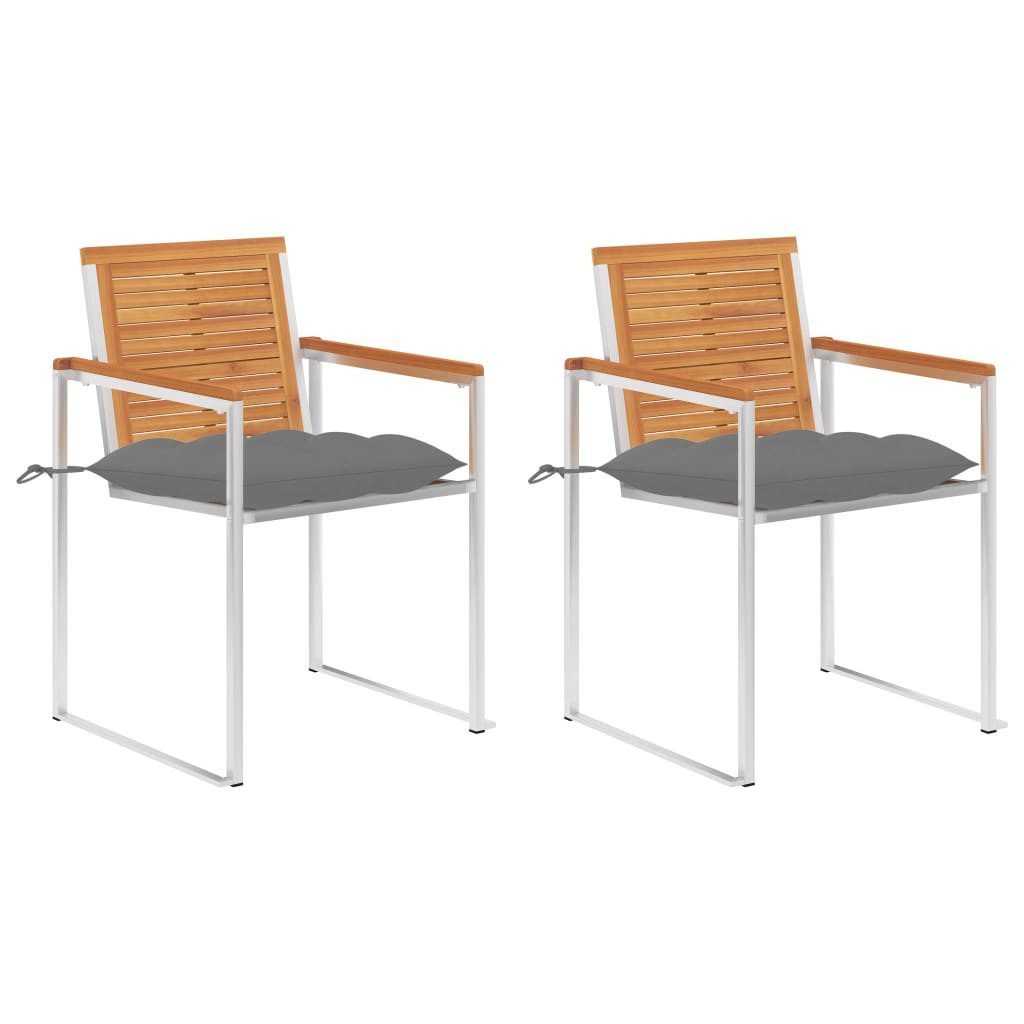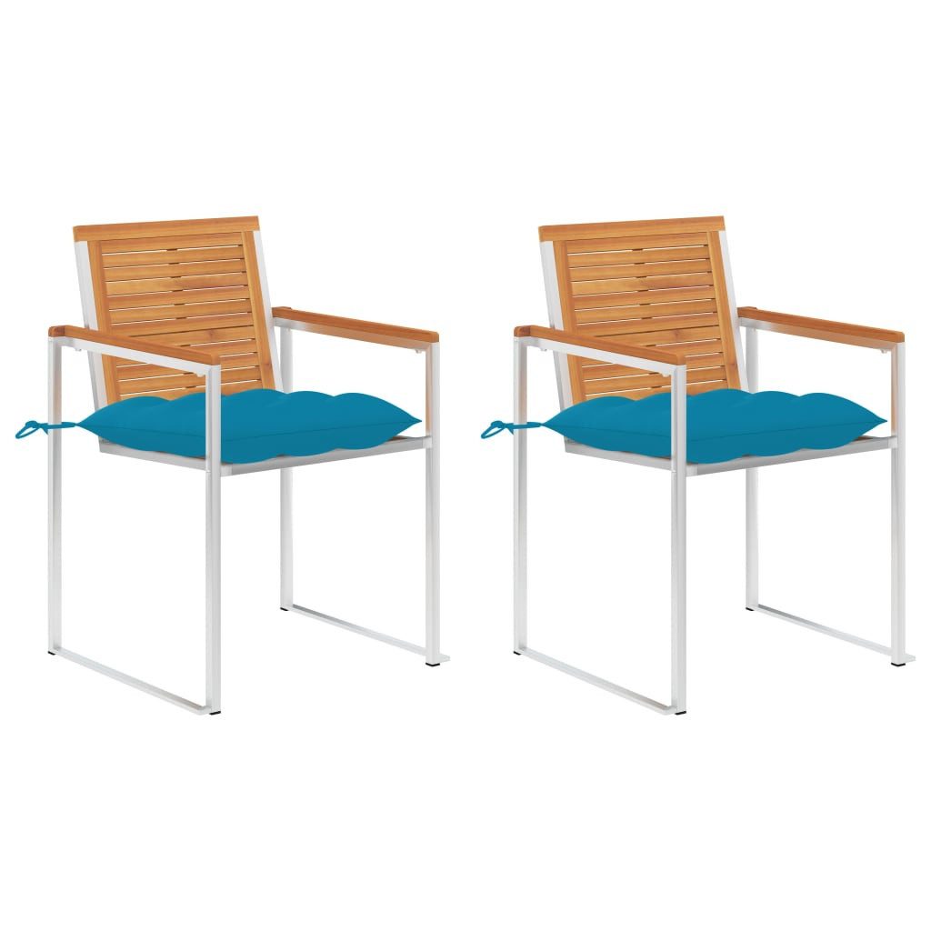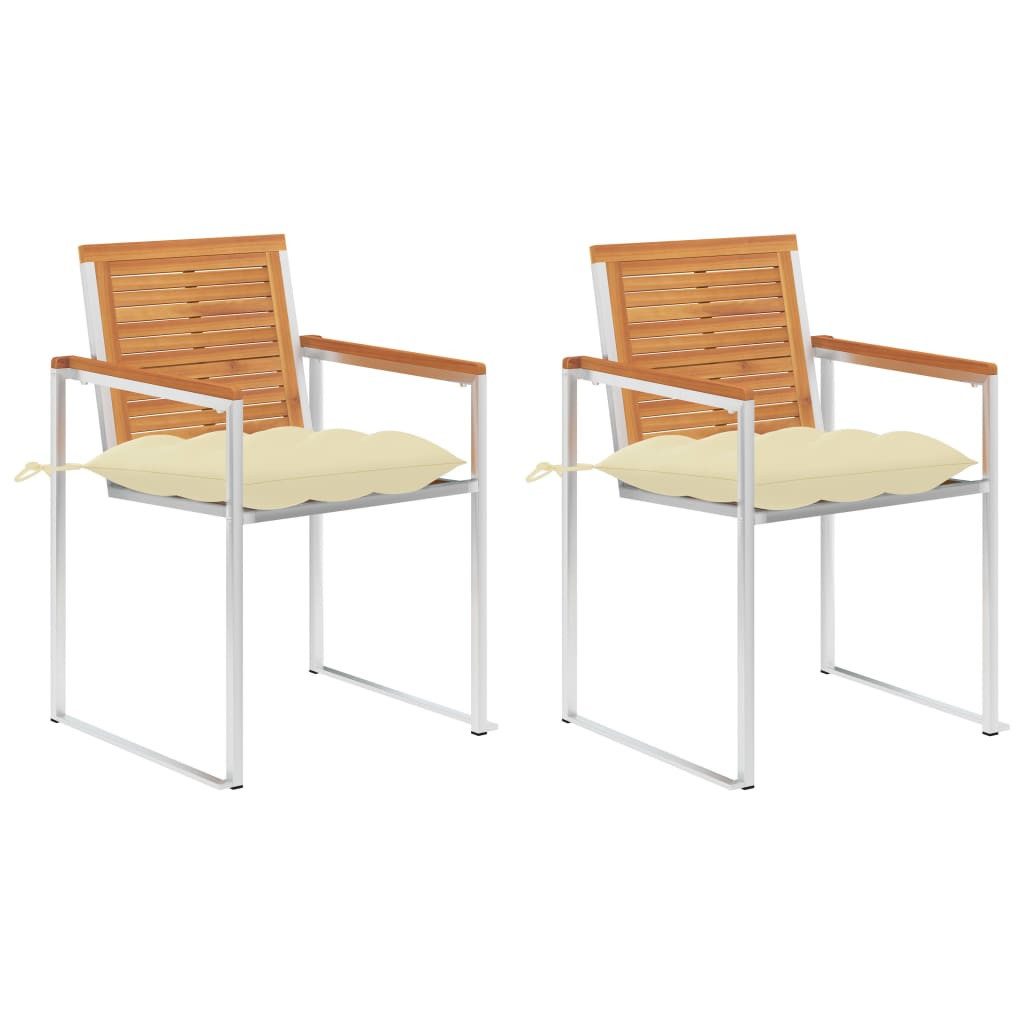 Diese Stühle bestehen aus ölbeschichtetem nholz und hochwertigem Edelstahl 304, wodurch sie rostbeständig sind. Sie sind außerdem robust und leicht zu reinigen. Zudem bietet das Kissen zusätzlichen Komfort beim Loungen. Jedes Kissen hat zwei Bänder zur Befestigung am Gartenstuhl.