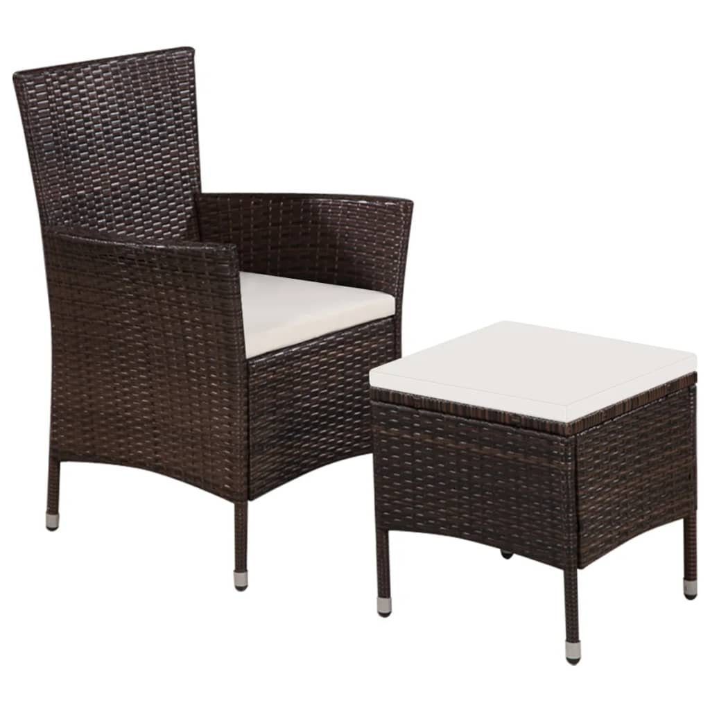 Dieses Garten-Möbelset im edlen Design aus Poly Rattan besteht aus 1 Essstuhl, 1 Hocker und 2 abnehmbaren Sitzpolstern und wird zum Mittelpunkt Ihres Gartens oder Ihrer Terrasse!