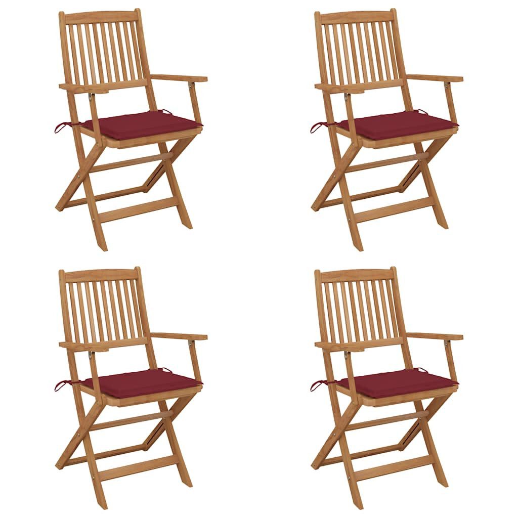 Diese Klappstühle aus massivem nholz mit Sitzpolstern bieten Ihnen den perfekten Platz zum Entspannen und Genießen der Sonne im Garten oder auf der Terrasse.