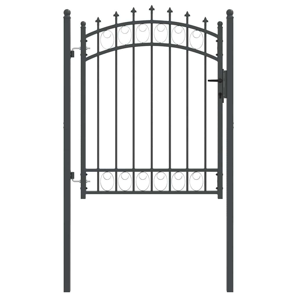 Das aus robustem Stahl gefertigte Zauntor hat eine robuste Konstruktion und wurde gegen Rost und Korrosion pulverbeschichtet. Mit den vertikalen Stäben mit Spitzen und der starken horizontalen Strebe als Verstärkung bietet dieses Gartentor ein hohes Maß an Sicherheit. Das gewölbte Oberteil trägt zu seiner Eleganz bei. Es wird mit zwei stabilen Pfosten und robusten Scharnieren für eine einfache Montage geliefert, und ein Schließsystem mit drei passenden Schlüsseln ist ebenfalls im Lieferumfang enthalten.
