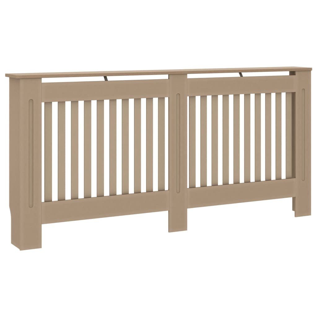Diese Heizkörperabdeckung ist eine stilvolle und praktische Ergänzung für Ihr Wohnzimmer. Sie wurde entwickelt, um Ihren Heizkörper dekorativ zu verkleiden und zusätzlichen Platz für Fotorahmen, Bücher, Ornamente usw. zu bieten. Die robuste und langlebige Heizkörperabdeckung besteht aus MDF mit wasserbasierter Lackierung und weist ein modernes Latten-Design auf, das zu jeder Inneneinrichtung passt. Unsere Heizkörperverkleidung ist einfach zu montieren.