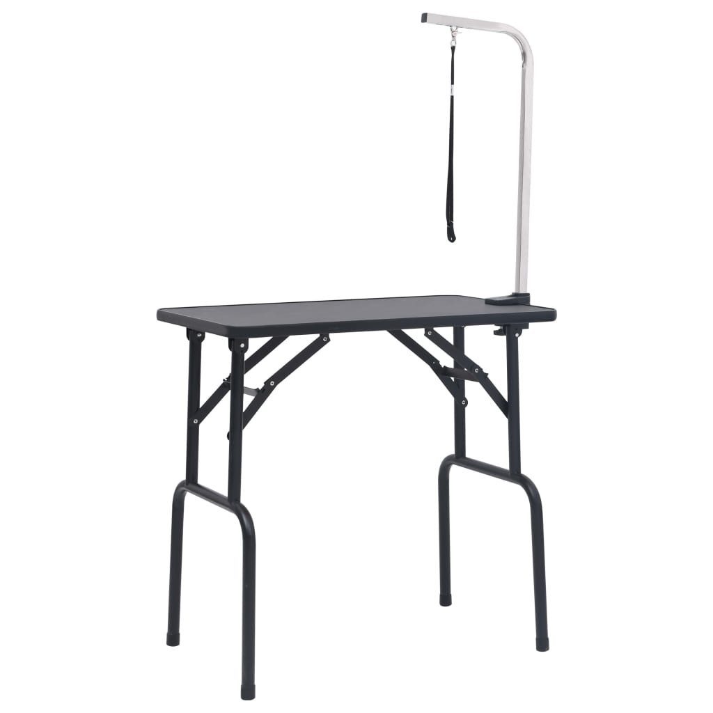 Dieser Haustier-Pflegetisch wird von Stahlbeinen getragen, wodurch er stabil und robust ist. Die große rutschfeste Tischplatte schafft eine bequeme Oberfläche, auf der Ihre Haustiere bequem stehen können. Zusätzlich ist der Galgen aus Edelstahl höhenverstellbar. So können Sie eine perfekte Höhe einstellen, die zu der Размер Ihres Haustieres passt. Der Tisch ist faltbar und ideal für mobile Hundefriseure und den Heimgebrauch, da er leicht zu verstauen ist. Darüber hinaus verhindern die runden Ecken Verletzungen.